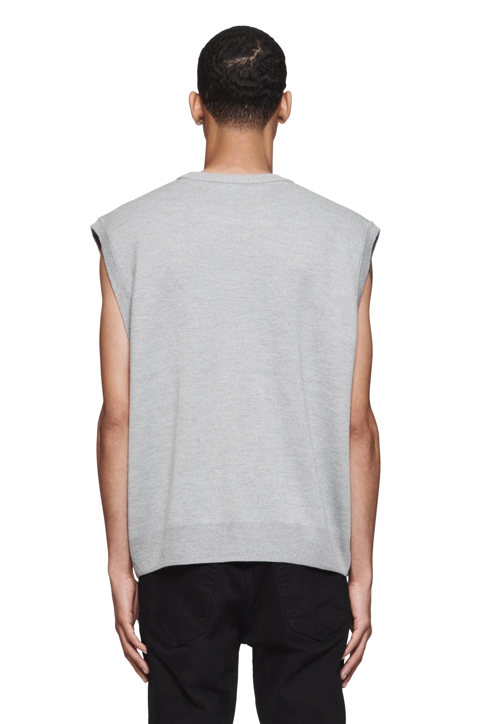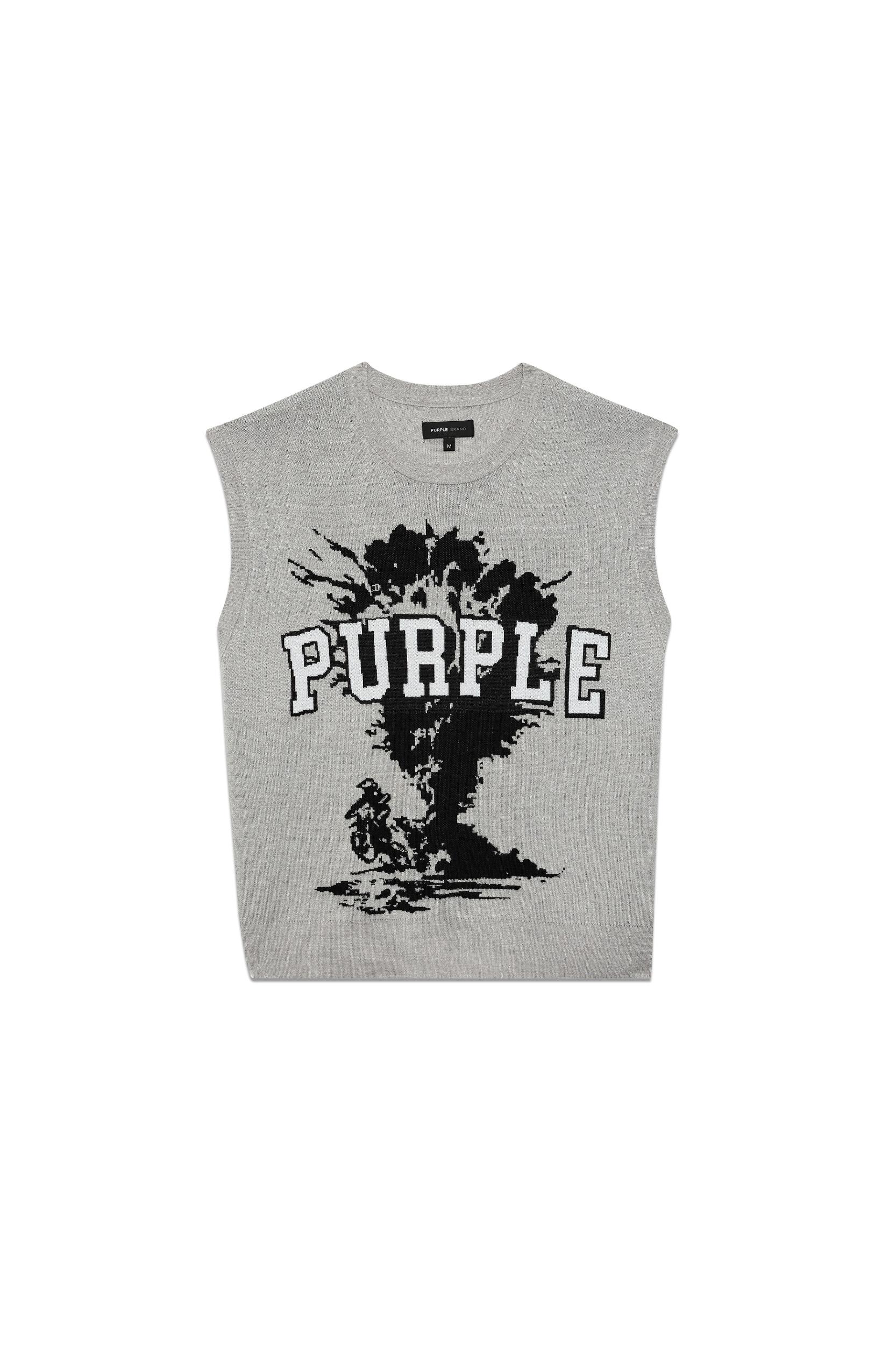 This sleeveless pullover sweater vest features an illustrated graphic as well as Purple Brand logo lettering in front. It’s designed in wool jacquard, tailored for a loose, oversized fit. Pre Fall 2024 White Label 50% Merino Wool / 50% Acrylic 27" Length, 24 3/4" Chest Jacquard Knit
