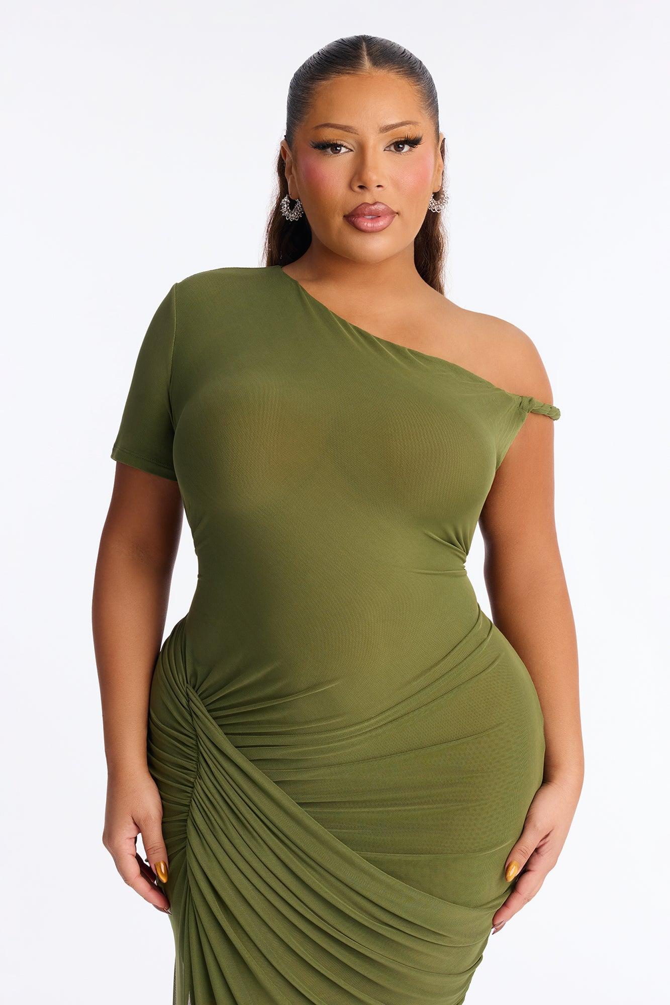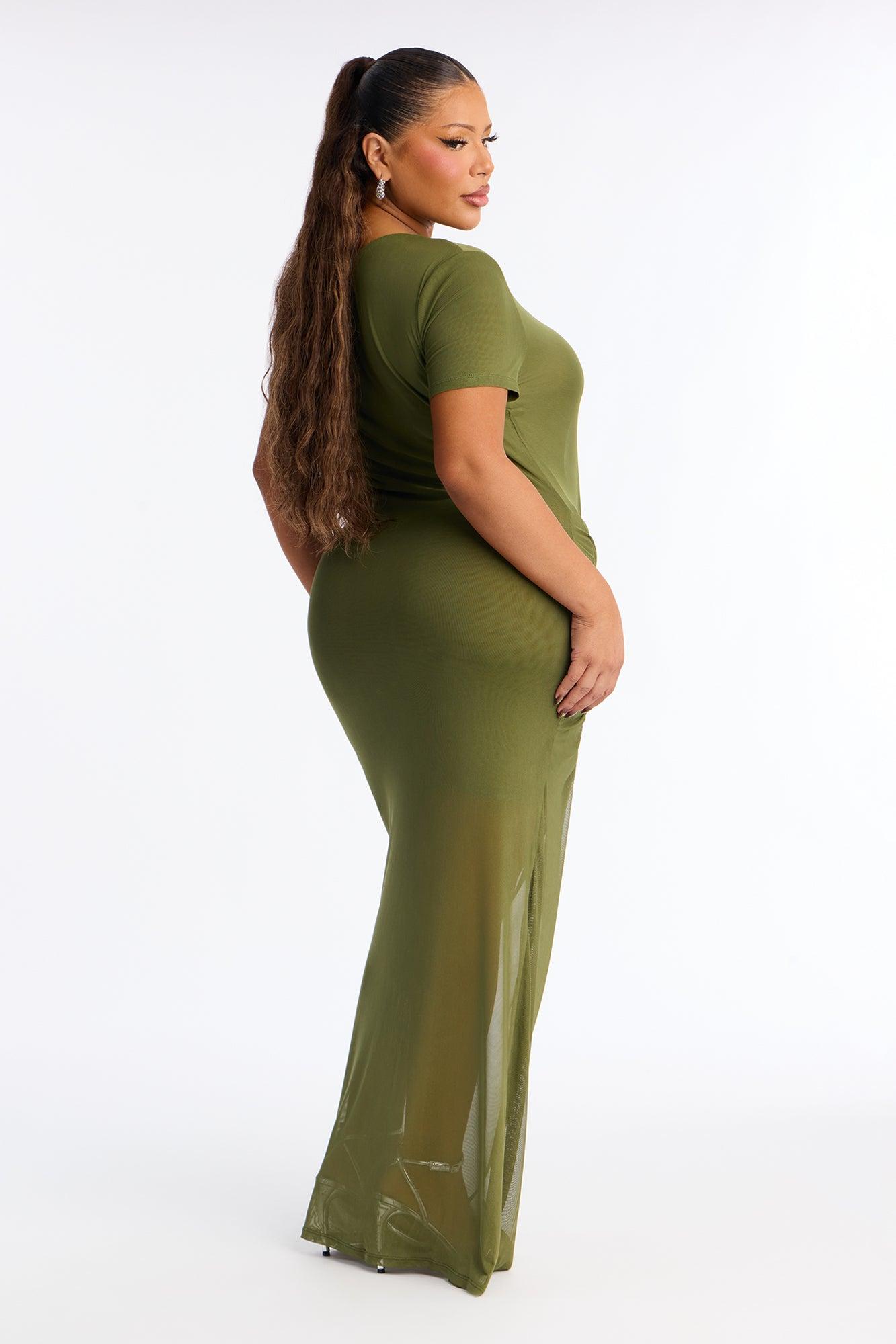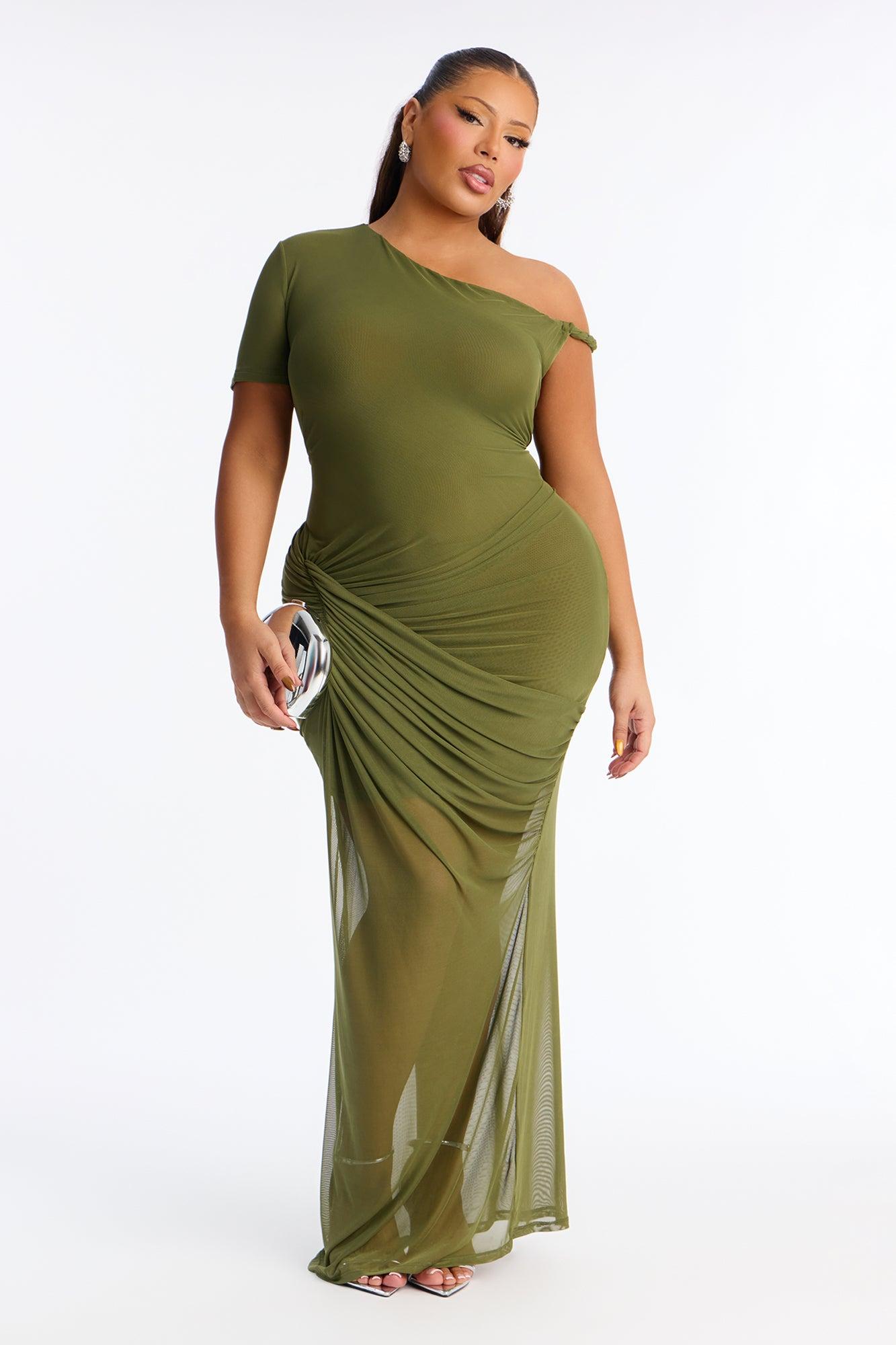 Skylar Asymmetrical Mesh Maxi Dress - Olive Female