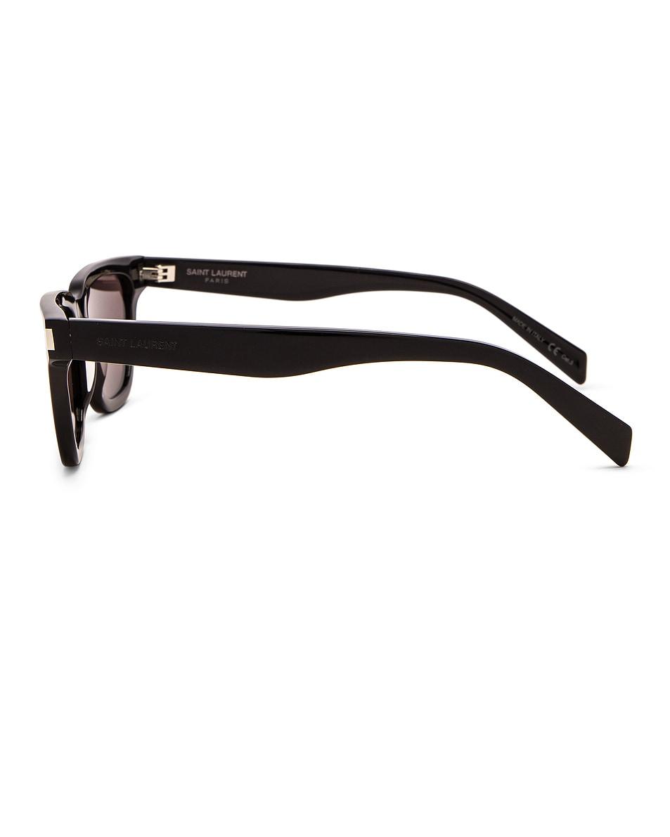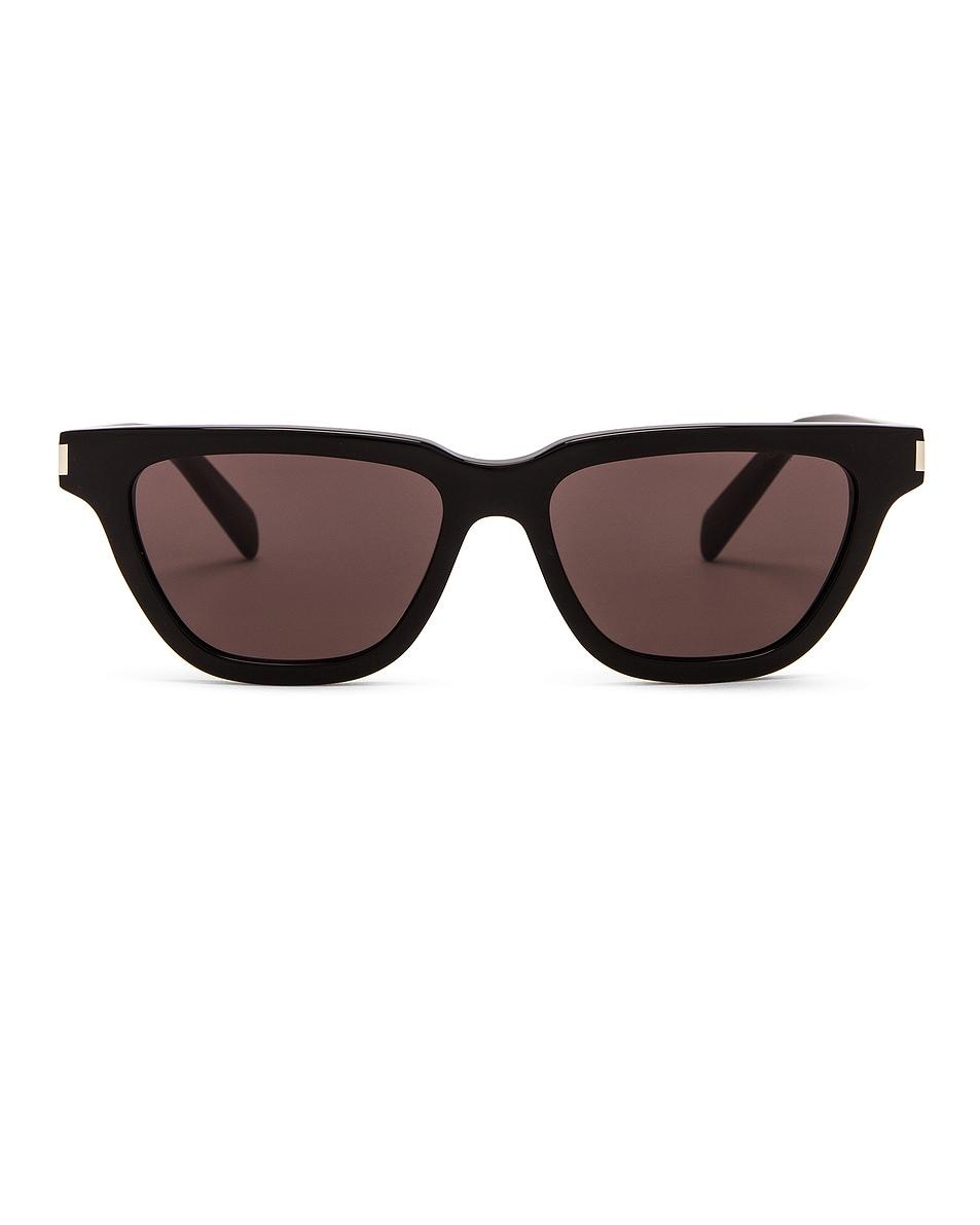 Saint Laurent SL 462 Sulpice Sunglasses in Black Glossy acetate frames. Made in Italy. Lens measures approx 53mm. Bridge measures approx 16mm. Arm measures approx 145mm. Engraved logo detail on arms. UV Category: 3. Includes cleaning cloth and soft case. SLAU-WA222. SL 462 SULPICE. About the designer: SAINT LAURENT has been influencing and revolutionizing the fashion industry since the debut of its iconic ‘Rive Gauche’ collection in 1966 - the couture house was the first to create a ready-to-wear capsule. The sleek, precisely tailored staples, like the signature biker jackets, transcend seasons and trends. Creative Director Anthony Vaccarello continues to honor the label’s illustrious reputation by reintroducing cult styles, including the ‘Lou’ handbag and ‘Tribute’ sandals.