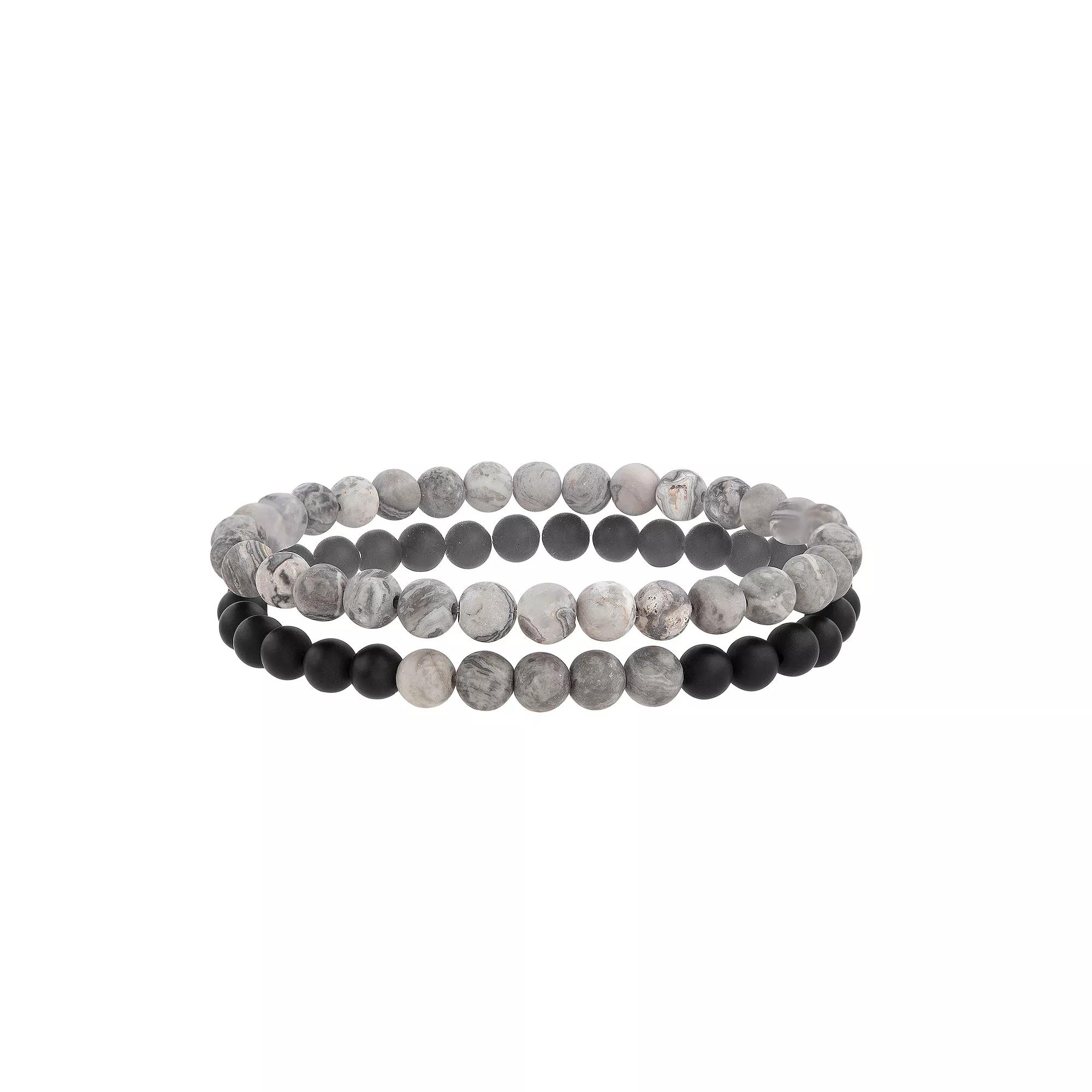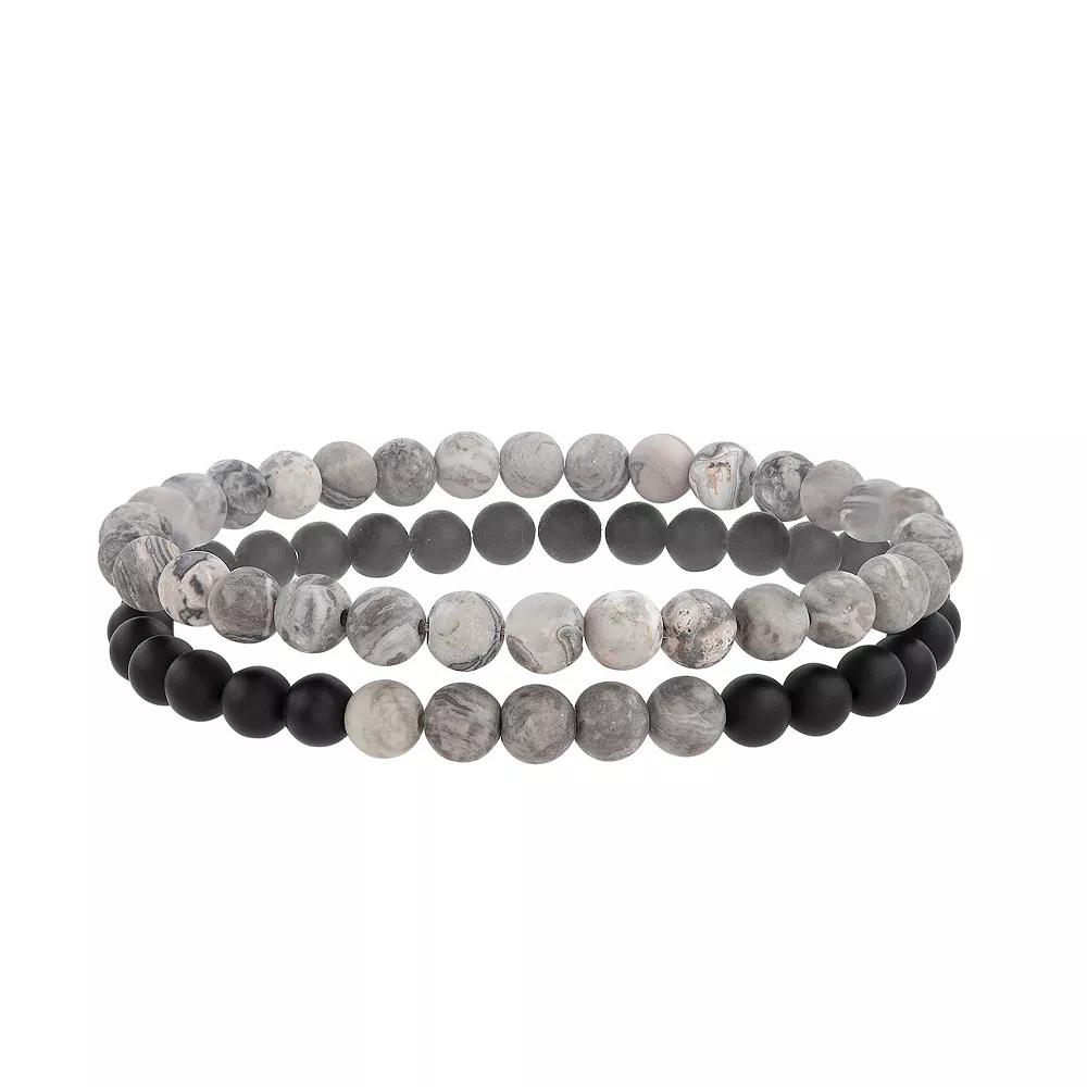 Accessorize in style with this slate Mens Black Agate & Jasper Bead Stretch Bracelet Duo Set. Click on this JEWELRY & WATCHES GUIDE to learn about fit, styles, materials and more! Accessorize in style with this slate Mens Black Agate & Jasper Bead Stretch Bracelet Duo Set. Click on this JEWELRY & WATCHES GUIDE to learn about fit, styles, materials and more! FEATURES Includes 2 beaded stretch bracelets Length: 8.25 in. Nickel free Finish: polished Packaging: boxedSTONE DETAILS Stone type: black agate, jasper Shape: bead Gemstones may have been treated to enhance their appearance. Special care may be required. Please visit our Gemstone Treatment & Special Care Guide for more information. Size: 8.25. Color: Multi. Gender: male. Age Group: adult.