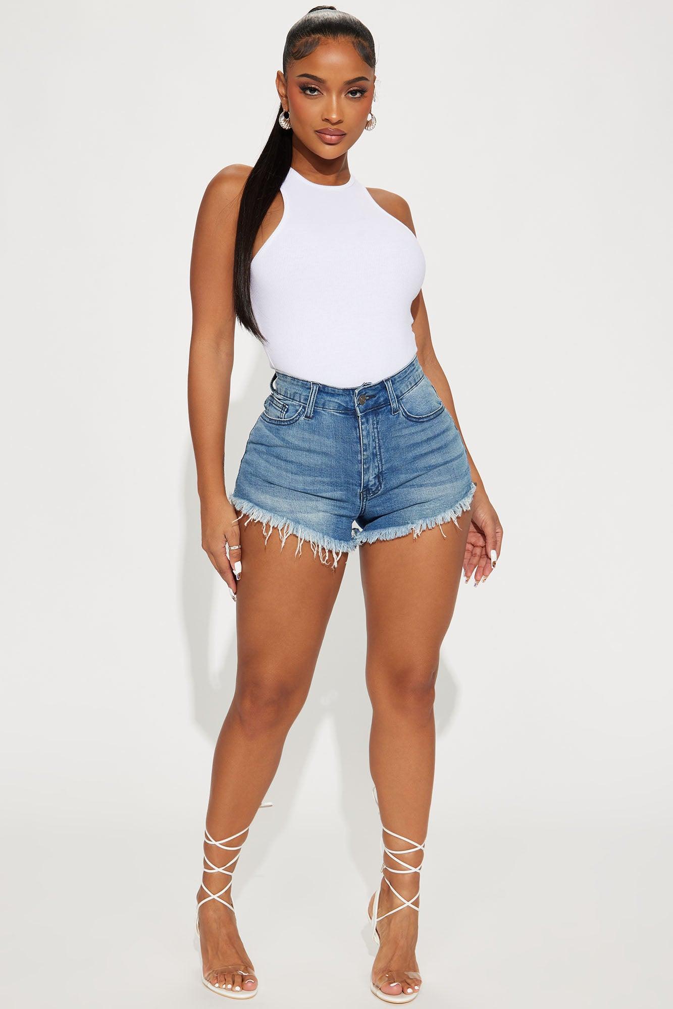Available In Black And Medium Blue Wash. Button & Zipper Closure Fray Hem Stretch Denim 5 Pockets 10 Mid Rise 2.5" Inseam Disclaimer: Due To The Specialized Wash & Distressing Process, Each Garment Is Unique 65% Cotton 33% Rayon 2% Spandex Imported California Proposition 65WARNING: Cancer and Reproductive Harm - www.P65Warnings.ca.gov.