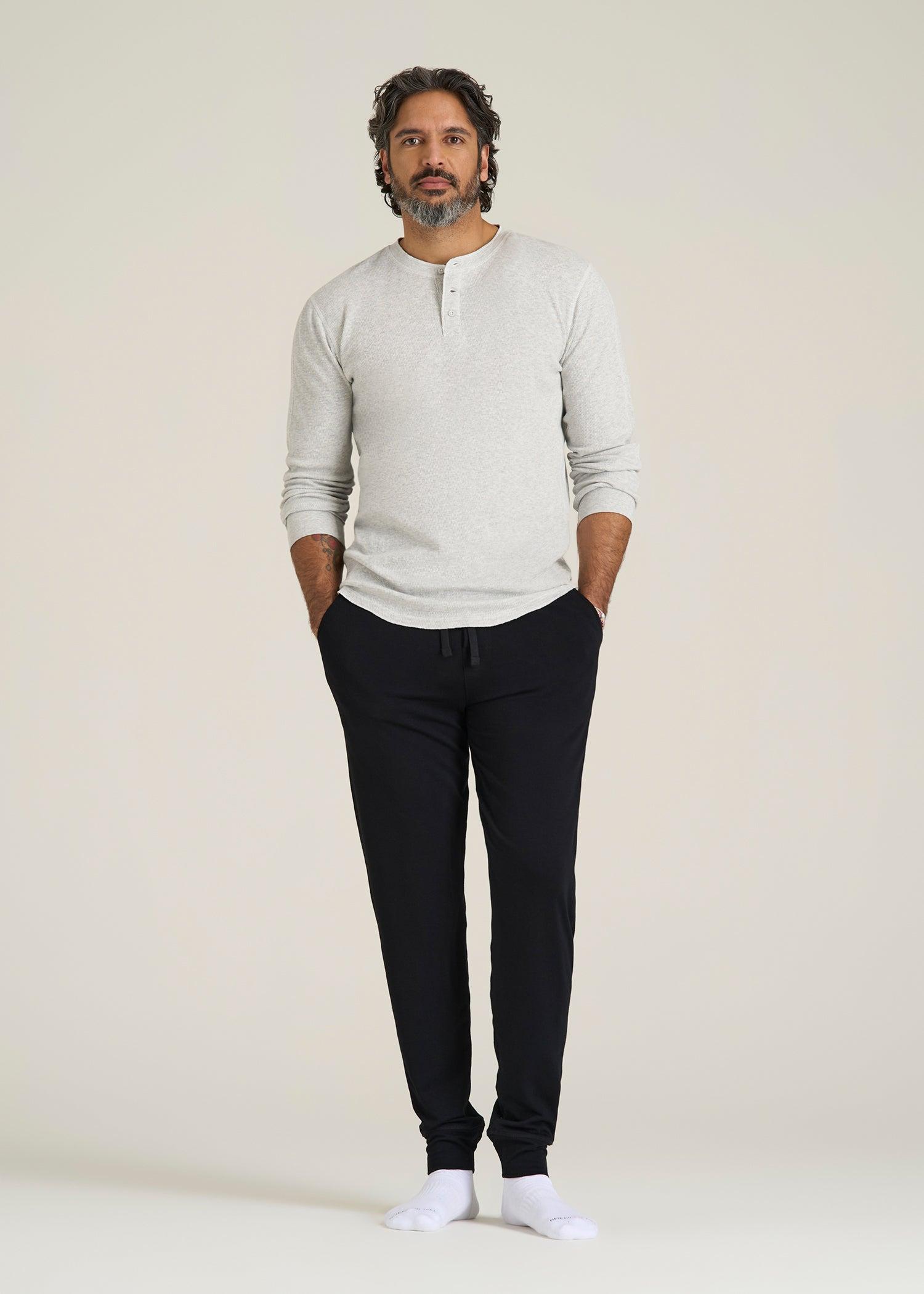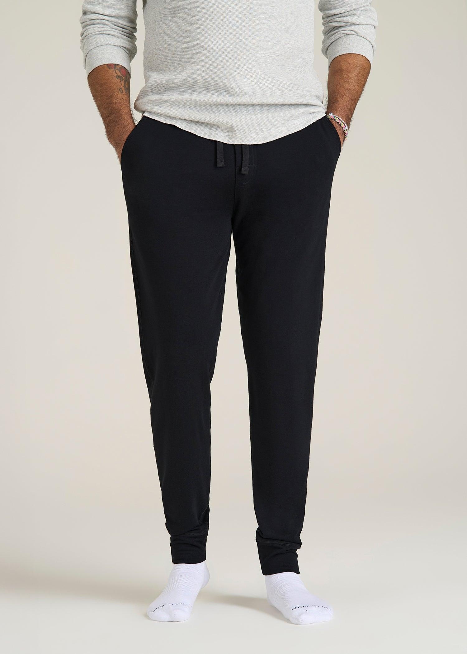 Sleep Tight in Right-Sized Tall Men's Jogger Pants For Tall Guys Who Dream Big Say goodnight to high-water pajamas and hello to our Sleep Jogger for Tall Men, where comfort meets length to fit like a dream. Designed specifically for taller guys, these extra-long men's joggers offer full-length coverage, an elastic waist with an internal drawstring, and a relaxed fit that’s just right for winding down. The soft fabric ensures you stay comfortable all night long, while the practical pockets mean your essentials are never too far away.• Full-length for complete leg coverage• Internal drawstring and elastic waist for a comfy, adjustable fit• Soft fabric for all-night comfort SIZE & FIT: Semi Tall Inseam: 31.5" Tall Inseam: 33.5" Extra Tall Inseam: 35.5" Designed with extra length for tall men Relaxed fit for ease of movement Elastic waist for a perfect night's rest Model is 6'8" wearing size L Tall FABRIC & CARE: 63% polyester, 33% rayon, 4% spandex Machine wash cold with like colors Do not bleach Tumble dry low Low heat iron