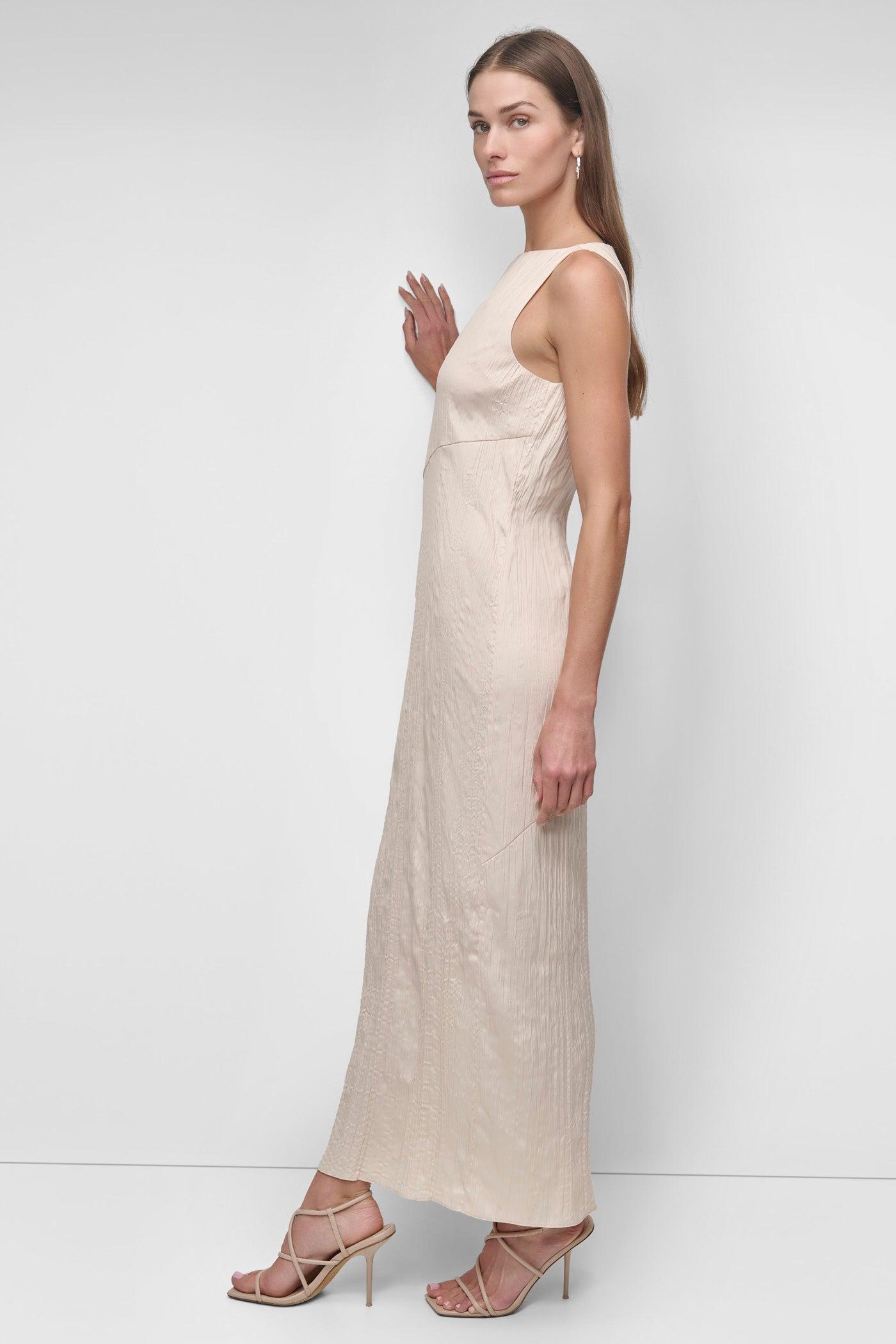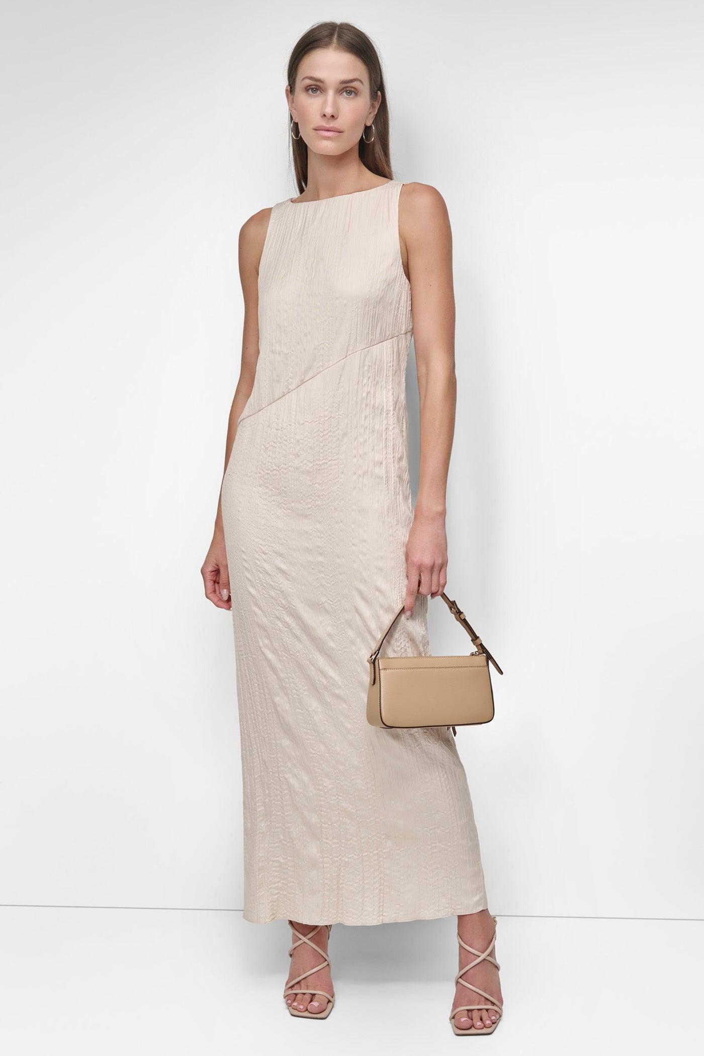 SLEEVELESS BROOMSTICK TWILL MIDI