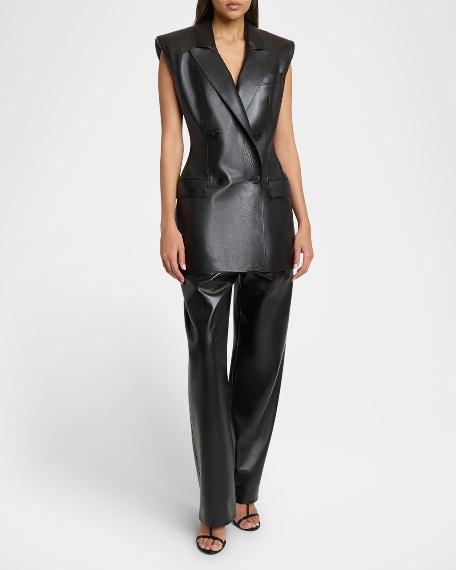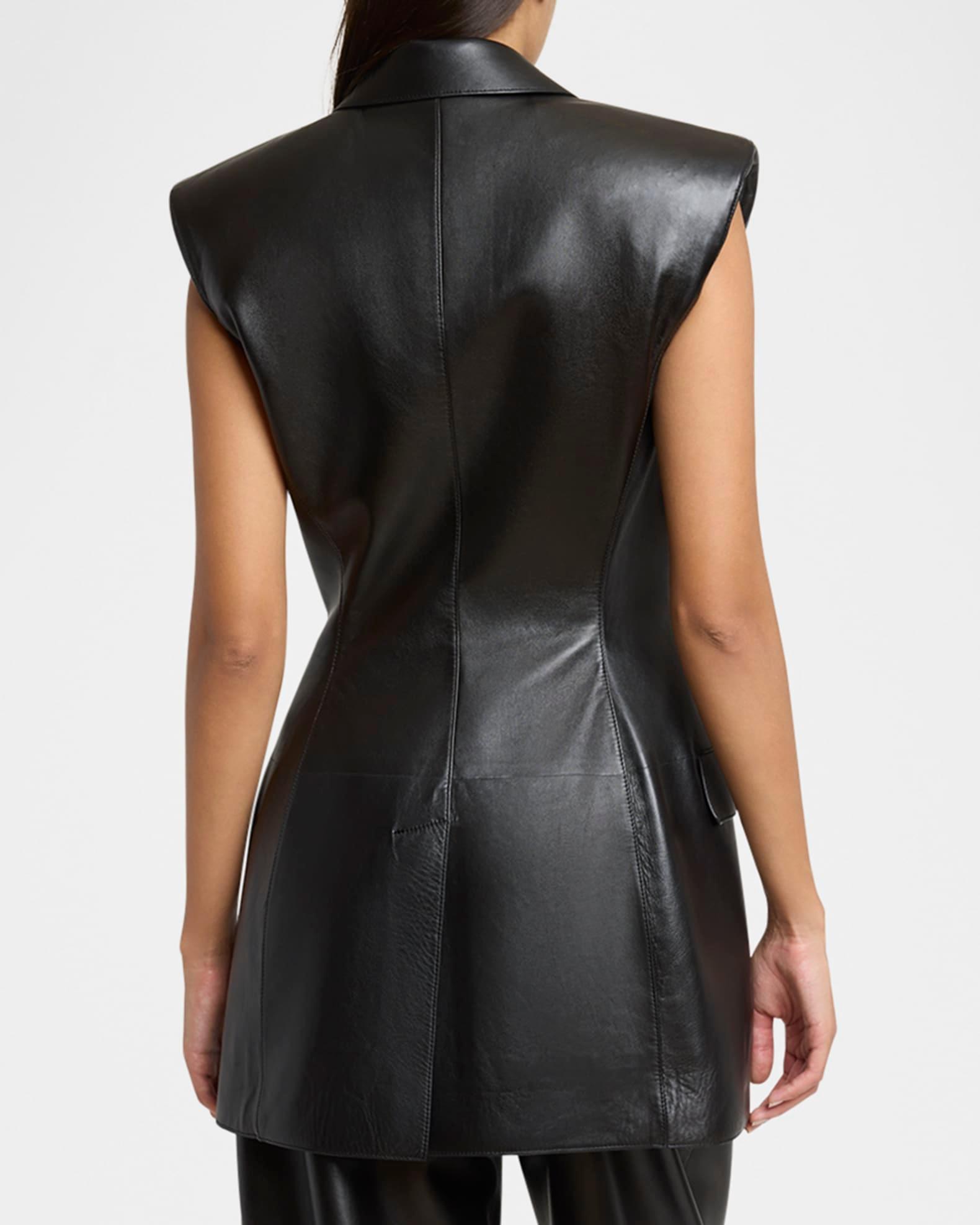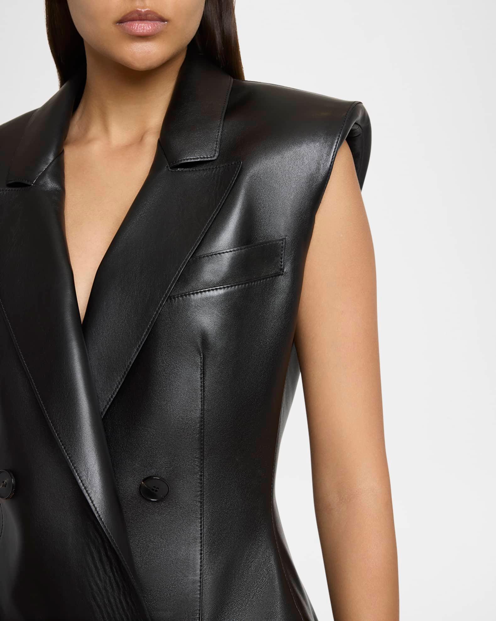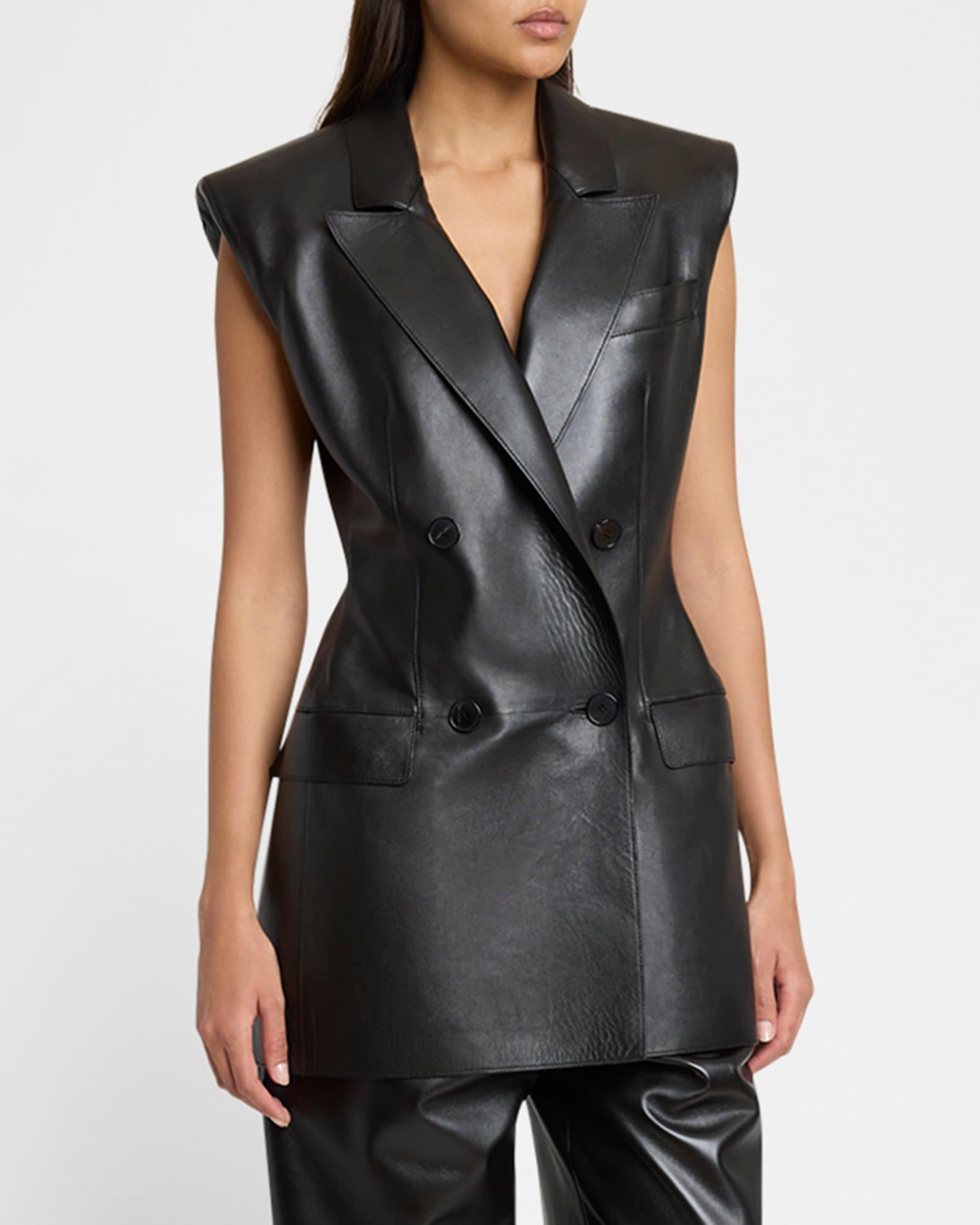 Sleeveless Double-Breasted Leather Jacket