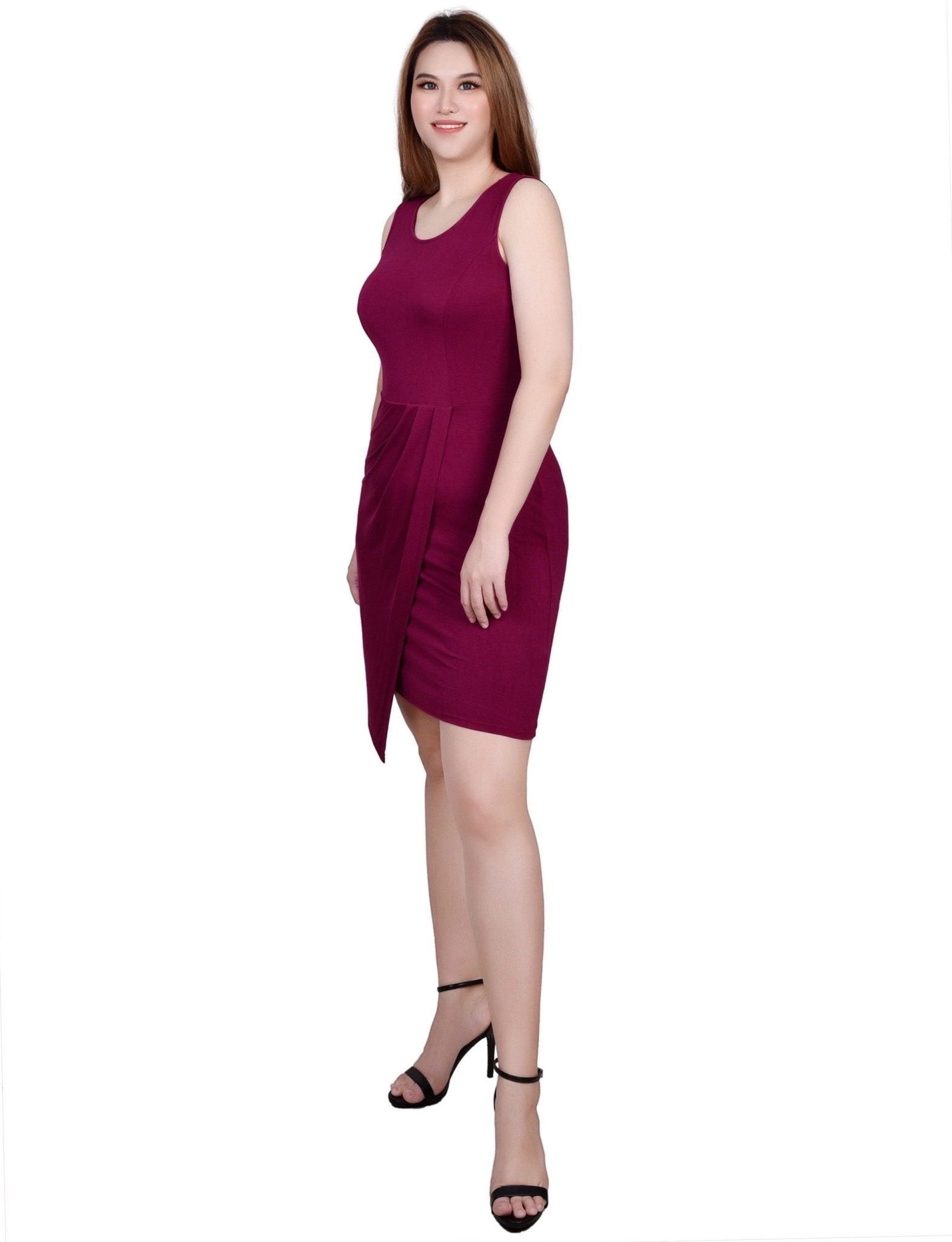 Sleeveless Faux Wrap Skirt Dress - Petite