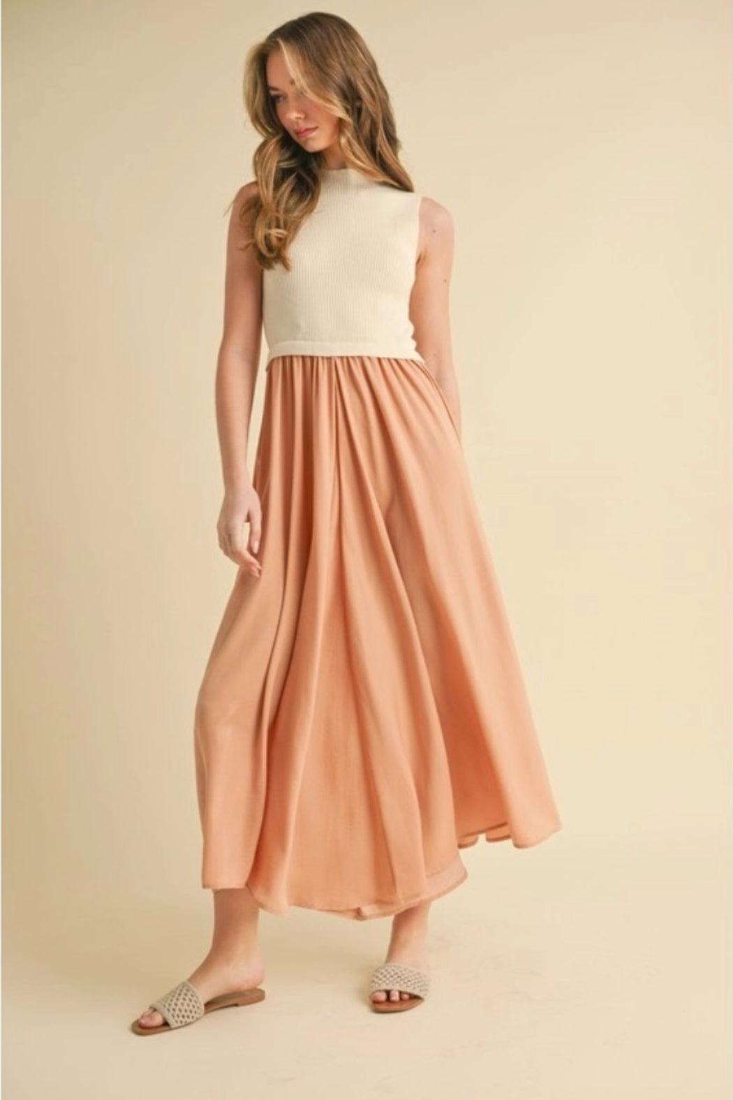 Sleeveless Sweater and Satin Midi Dress