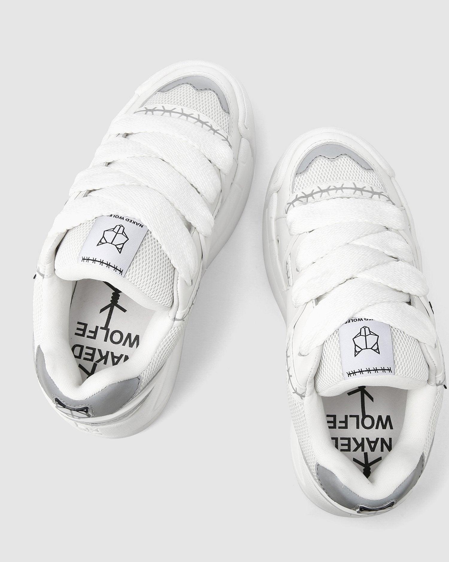 The skate sneaker makes a return, bigger and better than ever. Slider is the remix of icon style Skater. Made from a mix of leather, suede and mesh upper featuring barbed wire tape, moulded 3D rubber side panel moulds. Skater features a 3D bubble "Wolfe Head" Plaque on the heel. Slider has two pairs of extra thick 90’s inspired custom designed shoe laces.