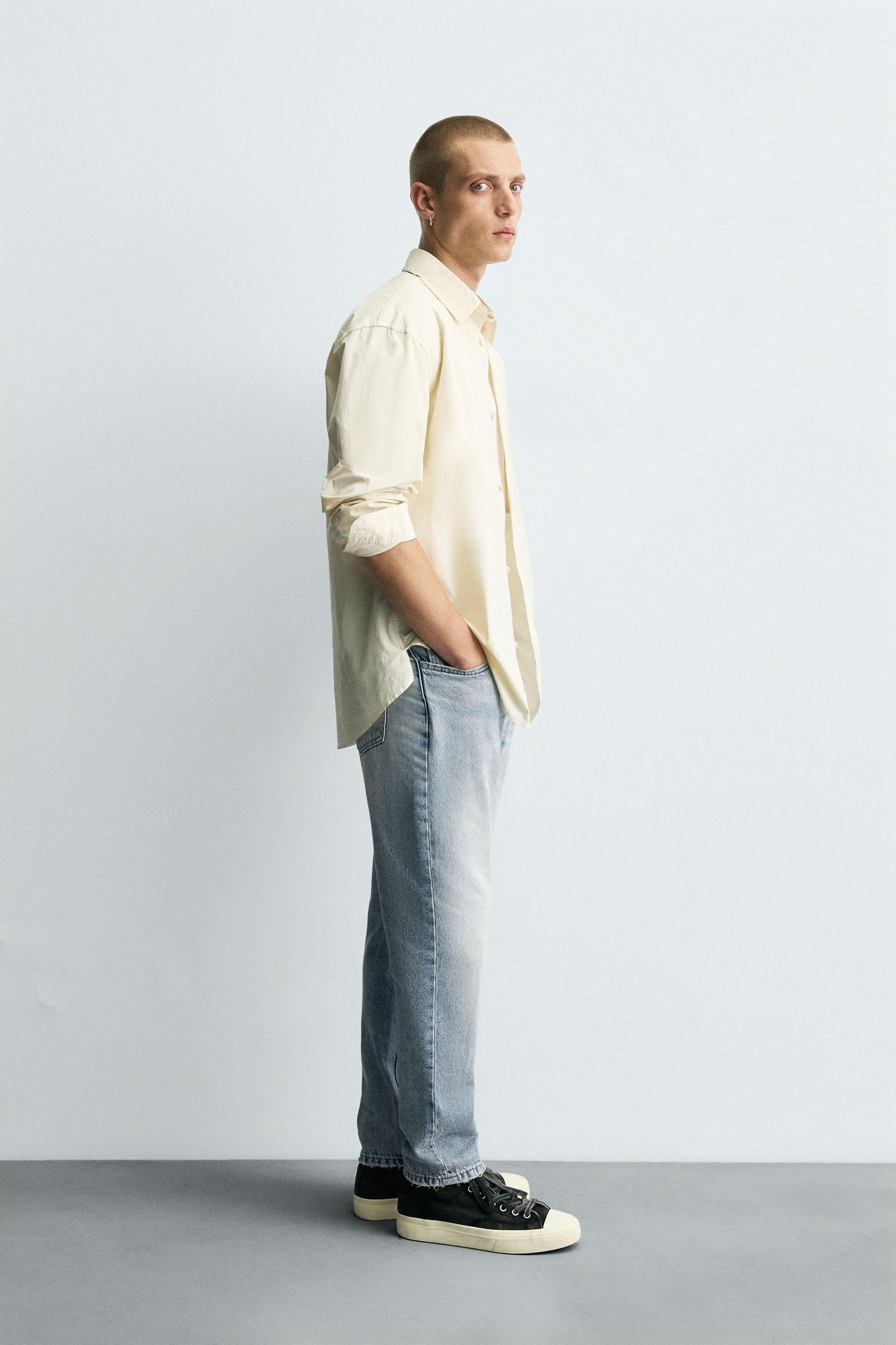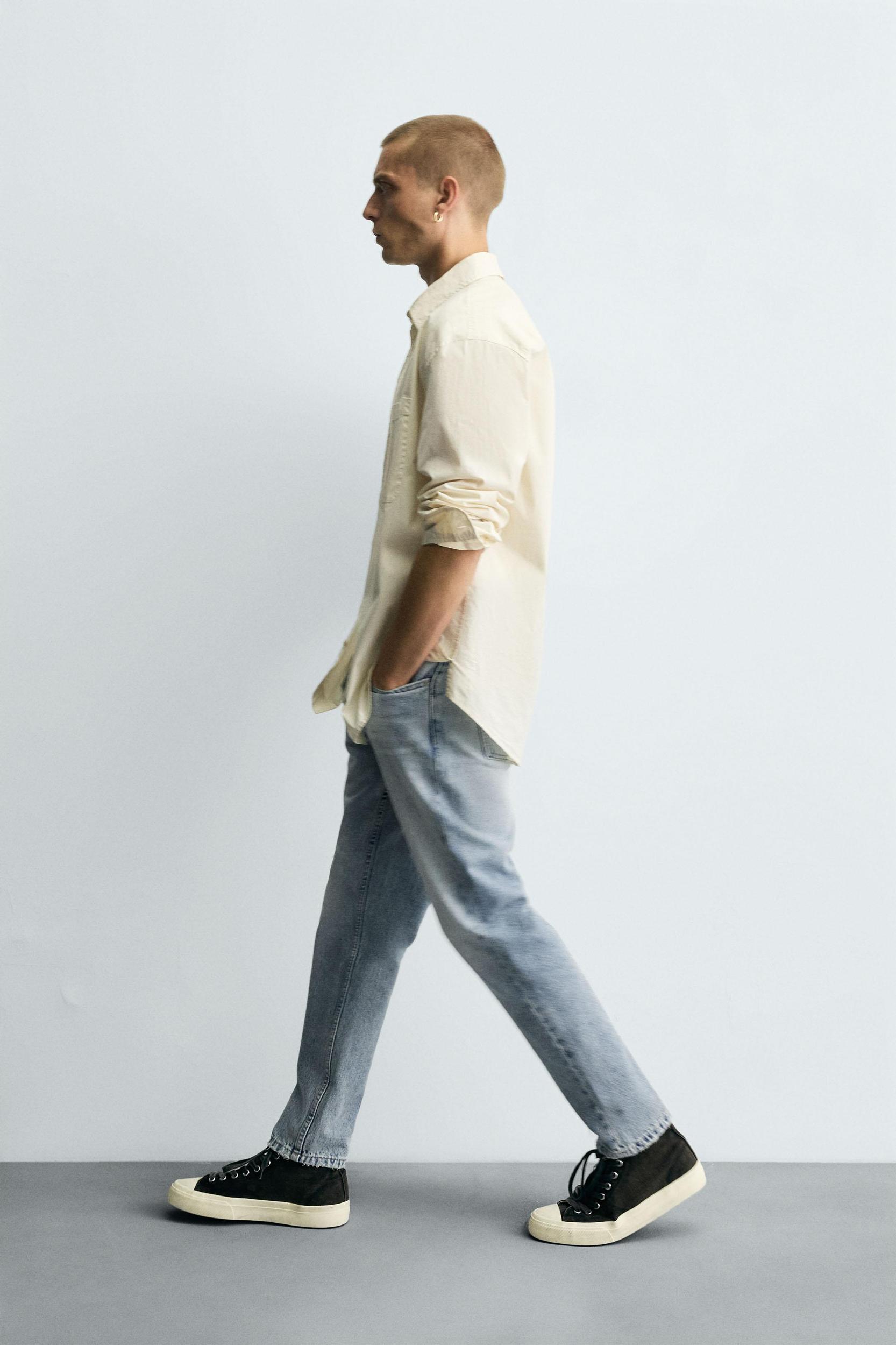 Fitted from the hip to the knee, with a straight leg to the ankle. Mid-rise. Slightly stretchy fabric. Slim cropped fit jeans. Five pockets. Washed effect. Front button closure.