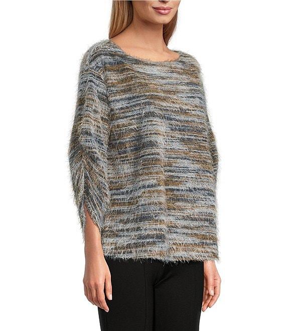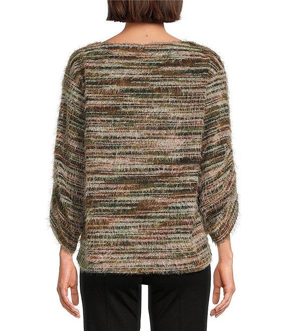 Slim Factor by Investments Alexa Boat Neck 3/4 Sleeve Fuzzy Knit Top