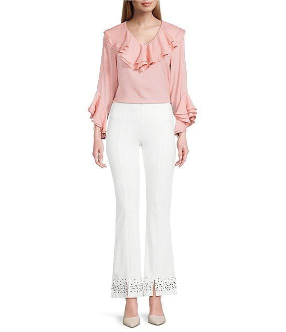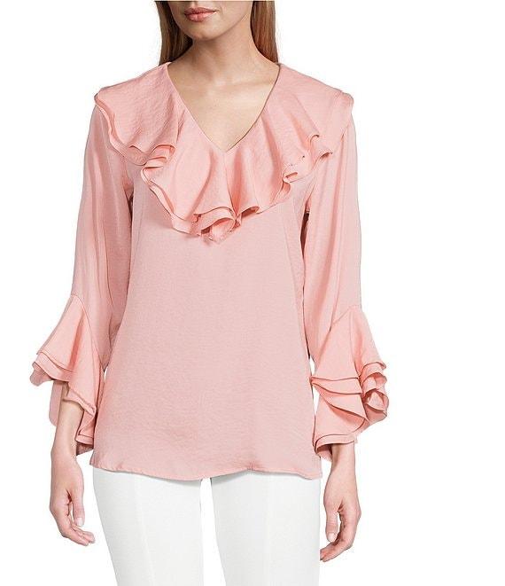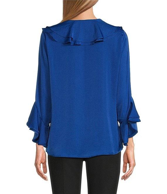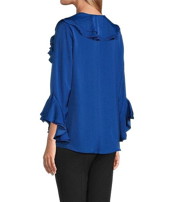 Slim Factor by Investments Corinne V-Neck 3/4 Ruffle Sleeve Blouse