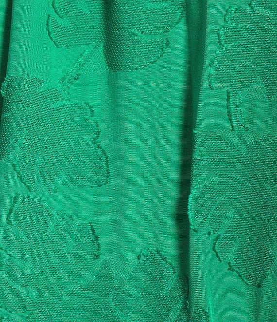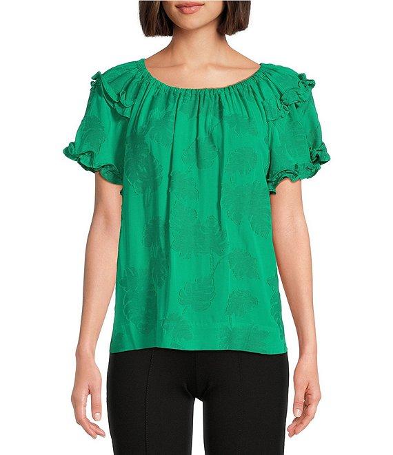 Slim Factor By Investments Heidi Palm Jacquard Elastic Linen Blend Crew Neckline Short Sleeve Top