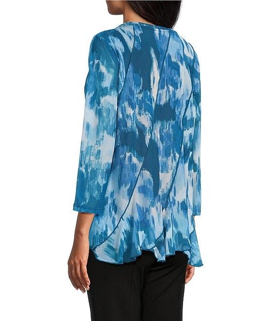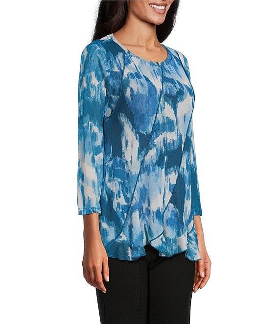 Slim Factor by Investments Kiki Blur Print Crew Neck Long Sleeve Ruffled Hem Lined Top
