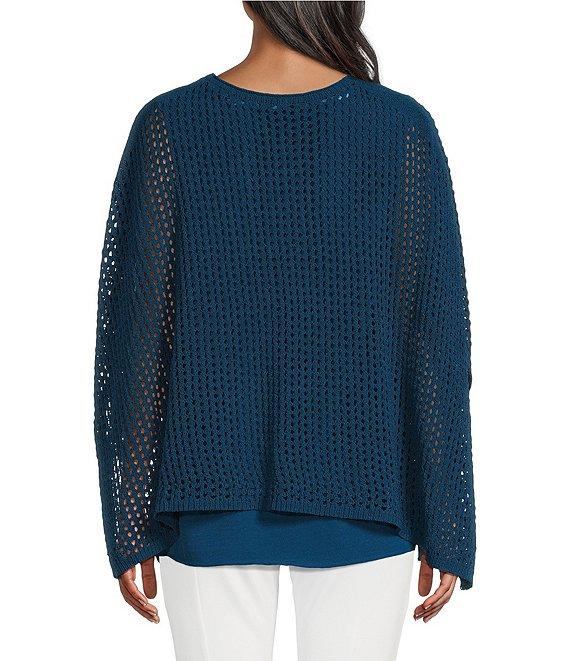 Slim Factor by Investments Morgan Boat Neck 3/4 Sleeve Lined Crochet Twofer Top