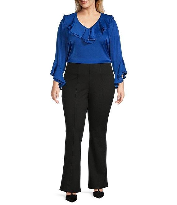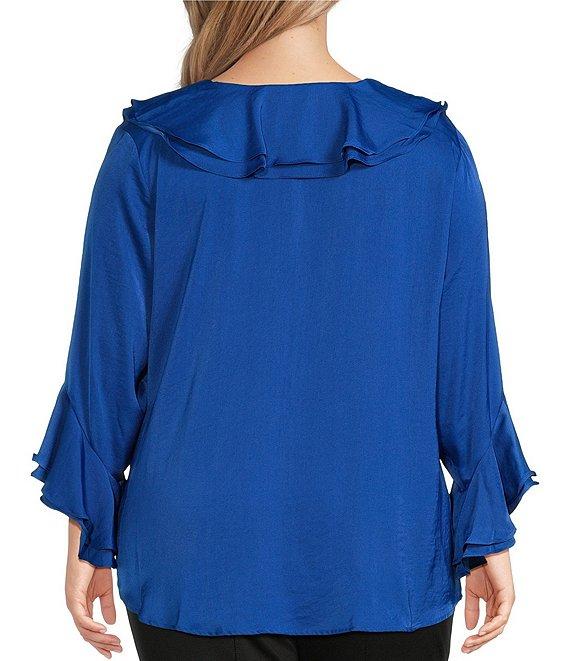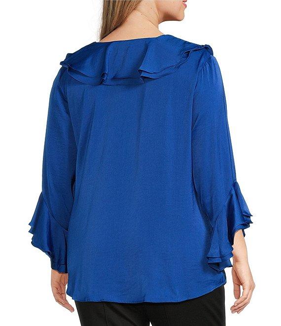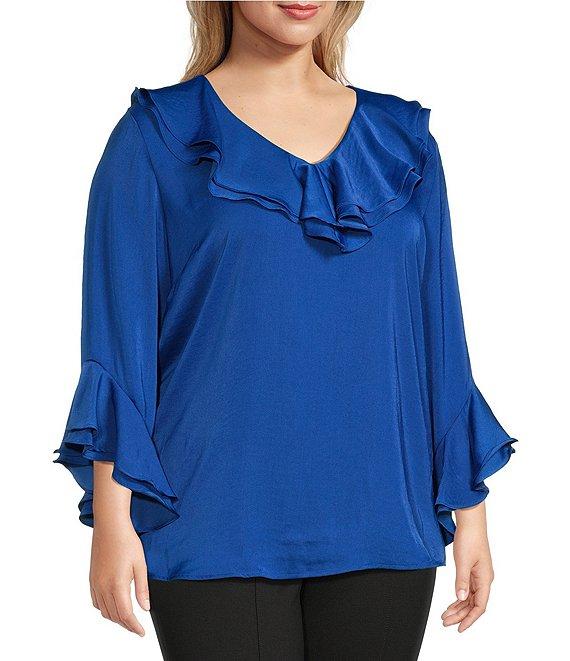 Slim Factor by Investments Plus Corinne V-Neck 3/4 Ruffle Sleeve Blouse