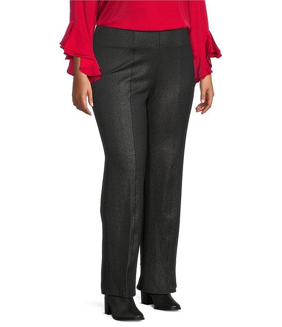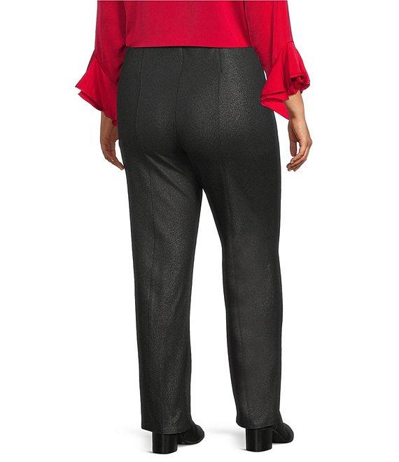 From Slim Factor by Investments Plus, these pants feature: Novelty ponte knit fabrication Straight leg silhouette Front and back leg seams contour to your body creating the appearance of an elongated leg Hidden compression waistband helps to slim and smooth the waist 4-way stretch fabric provides comfort all day Pull-on construction Approx: 30" regular inseam; 28" short inseam Rayon/nylon/spandex Hand wash Imported.