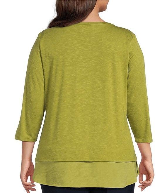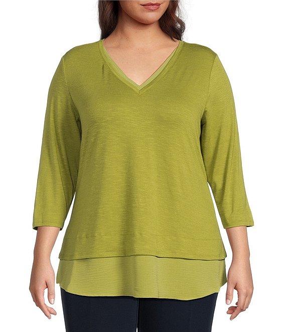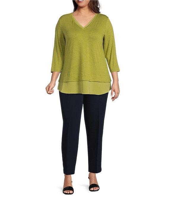 Slim Factor by Investments Plus Size Chloe V-Neck 3/4 Sleeve Mixed Media Top