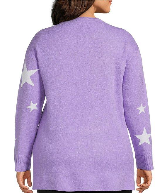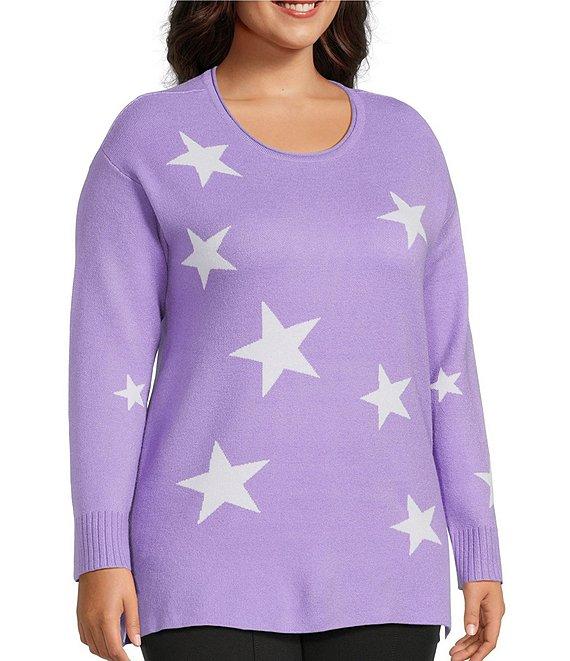 Slim Factor by Investments Plus Size Madison Crew Neck Long Sleeve Star Sweater