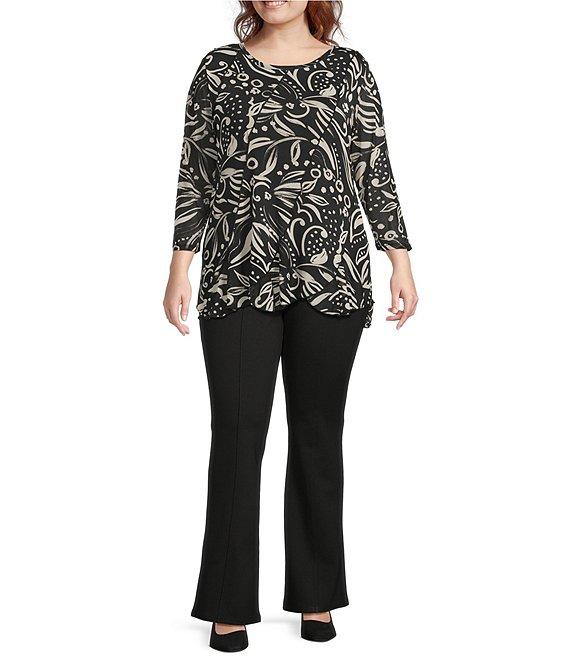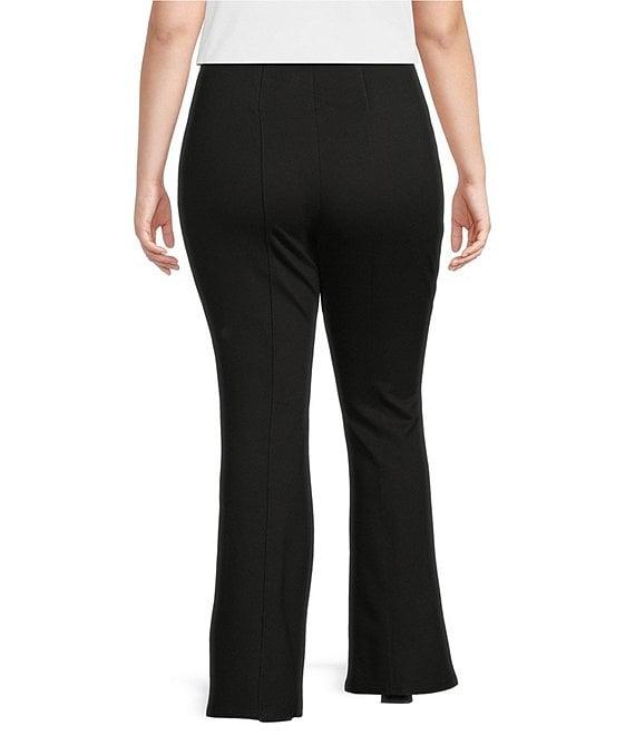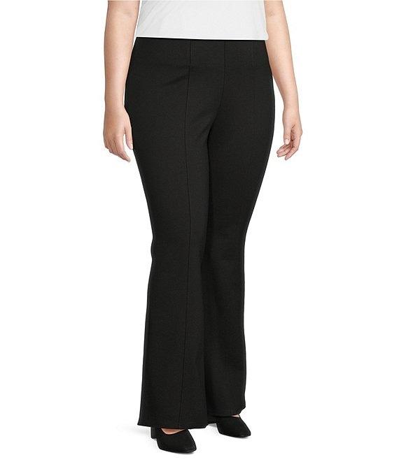From Slim Factor by Investments Plus, these pants feature: Ponte knit fabrication Flared leg silhouette Elastic waistband helps to slim and smooth the waist 4-way stretch fabric provides comfort all day Gentle compression that slims, smooths, and elongates the leg Pull-on construction Approx. 31" inseam; short inseam 29" Rayon/nylon/spandex Machine wash/line dry Imported.