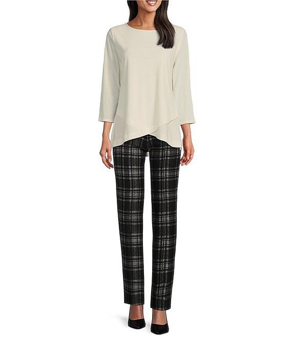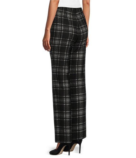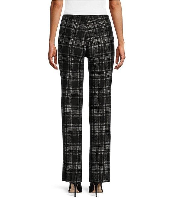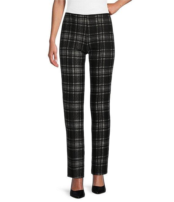 From Slim Factor by Investments, these pants feature: Ponte knit fabrication Straight leg silhouette Front and back leg seams contour to your body creating the appearance of an elongated leg Hidden compression waistband helps to slim and smooth the waist 4-way stretch fabric provides comfort all day Pull-on construction Approx. 30" regular inseam; 28" short inseam Rayon/nylon/spandex Machine wash/line dry Imported.