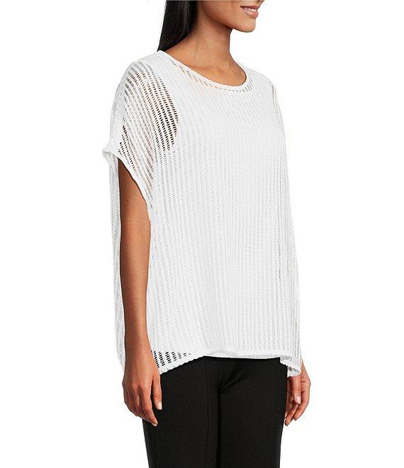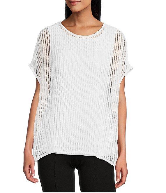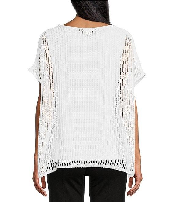 From Slim Factor by Investments, this top features: Crew neckline Short sleevesKnit crochet fabricationPullover constructionPolyester/spandexMachine wash/tumble dryImported.
