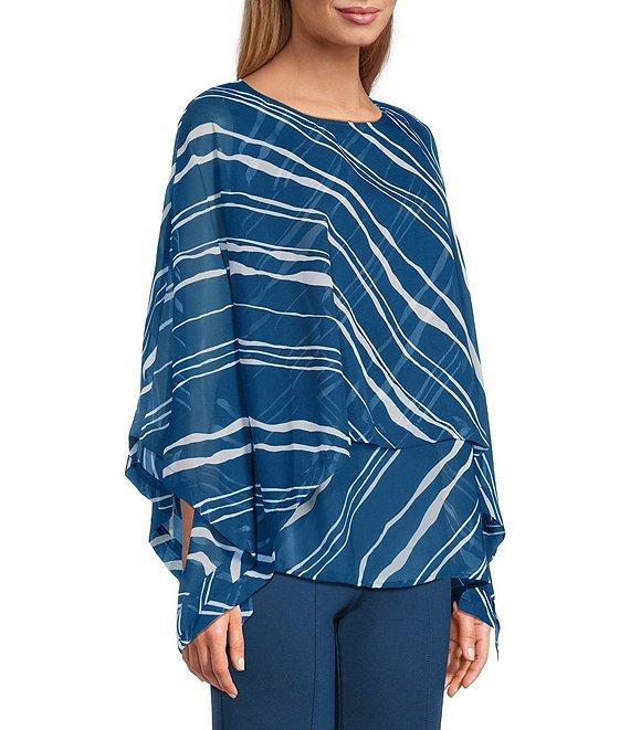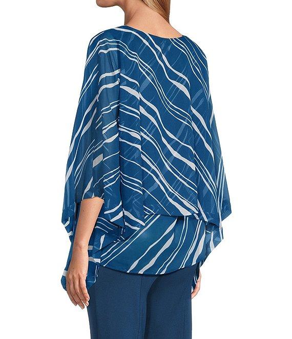 Slim Factor by Investments Stripe Print 3/4 Sleeve Crew Neck Double Layer Top