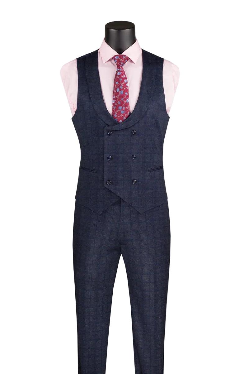 Slim Fit 3 Pieces Suit including Jacket, Vest, and Pants Single-breasted Jacket with Armholes 2 Buttons, Peak Lapel, Side Vents Matching Vest with 6 Buttons Flat Front Pants; Un-Hemmed Bottoms for Alteration Ease *Accessories in product photos are NOT included
