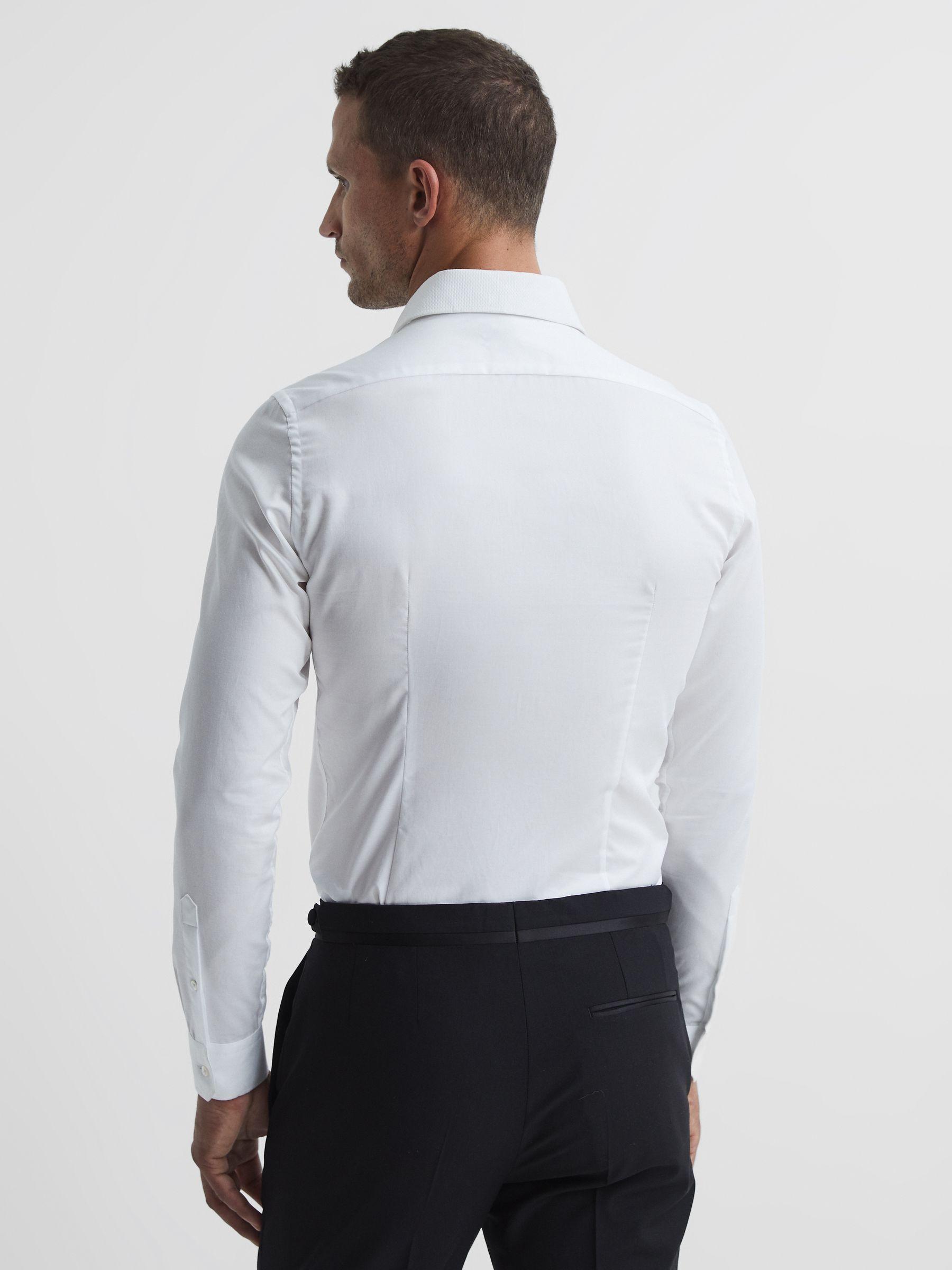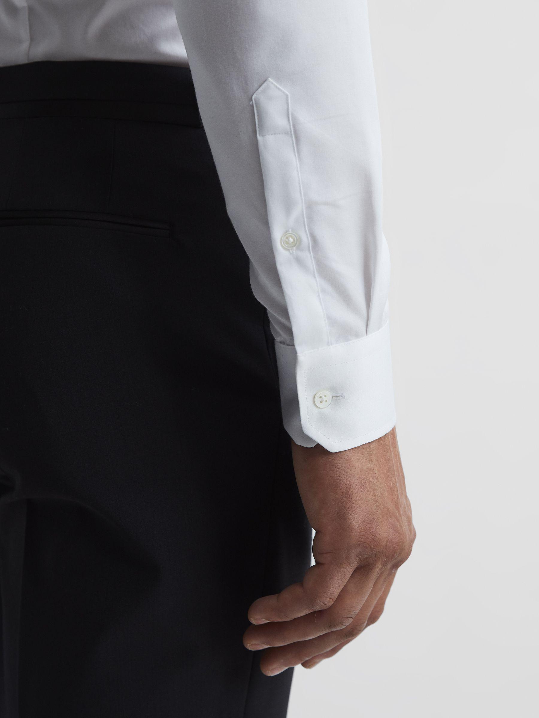 The textured bib at the front of the Marcel shirt is a classic feature that adorns heritage black tie tailoring. It s crafted from smooth, lightweight and breathable cotton with a point collar, buttoned cuffs and polished black dress studs down the front. Wear it with evening trousers and shoes for ageless poise. Point collar. Black dress studs. Buttoned cuffs. Textured bib. The model is wearing a size M. Measurements of model: 6ft 2" / 188cm. Long sleeve.