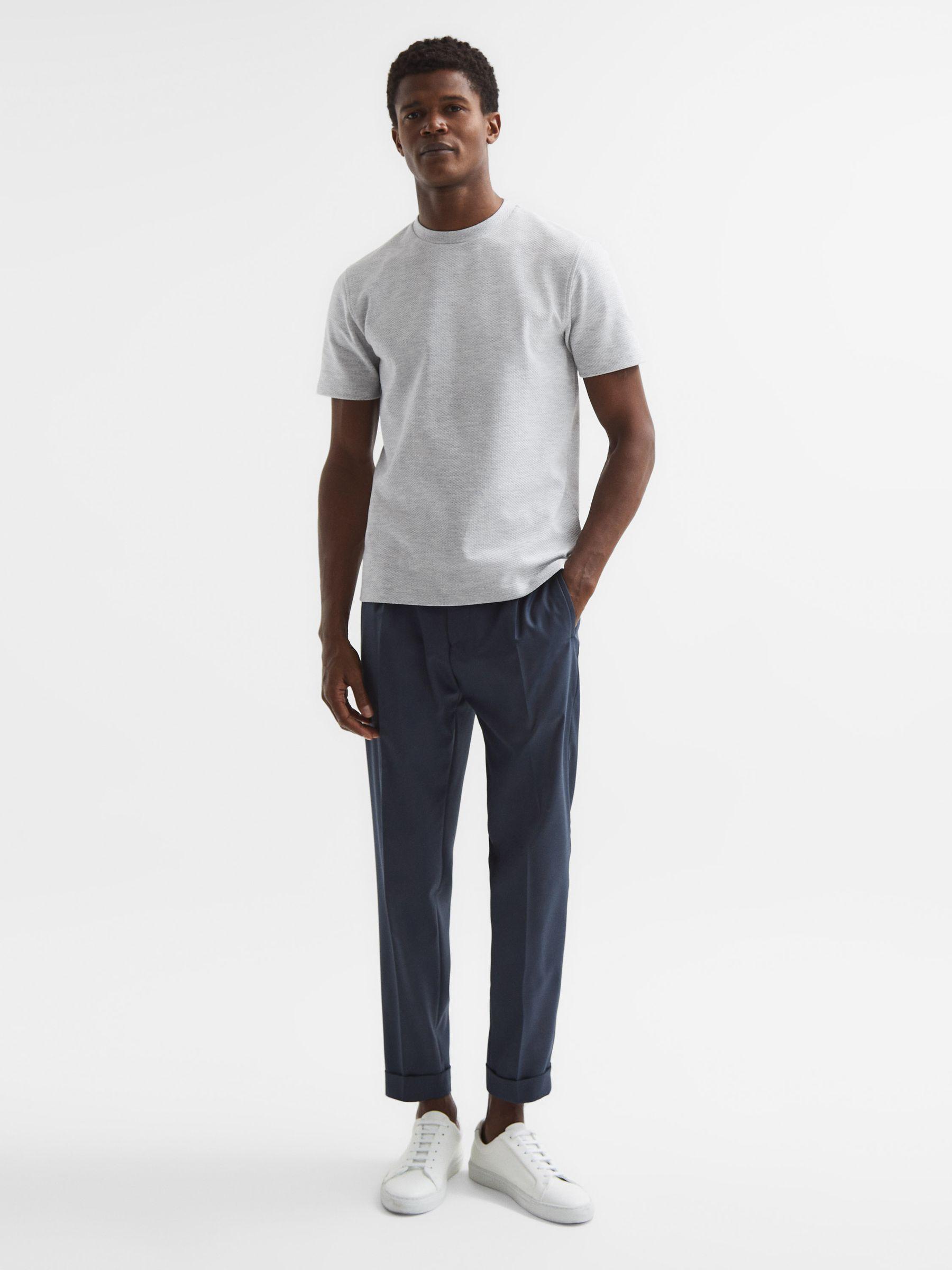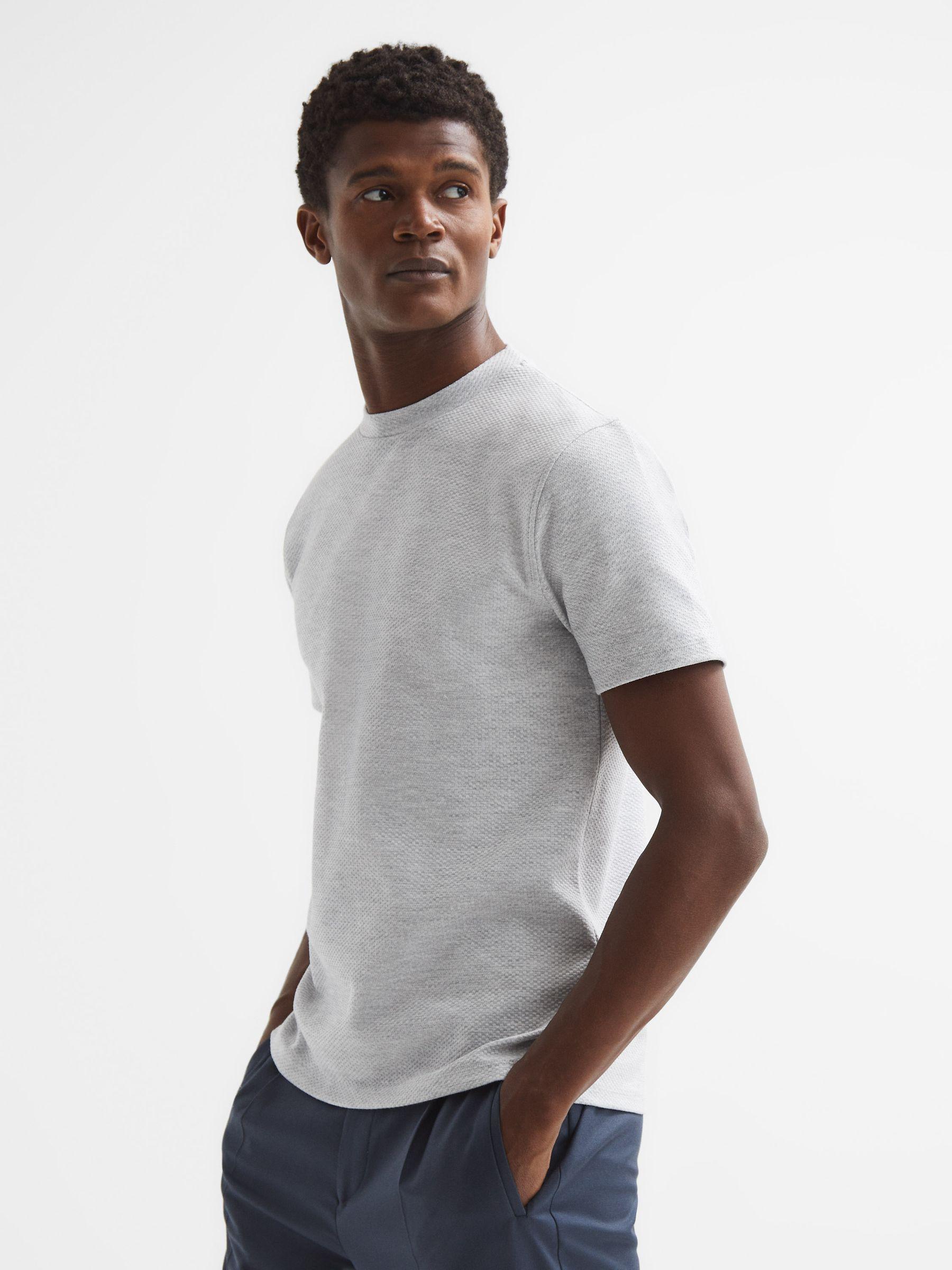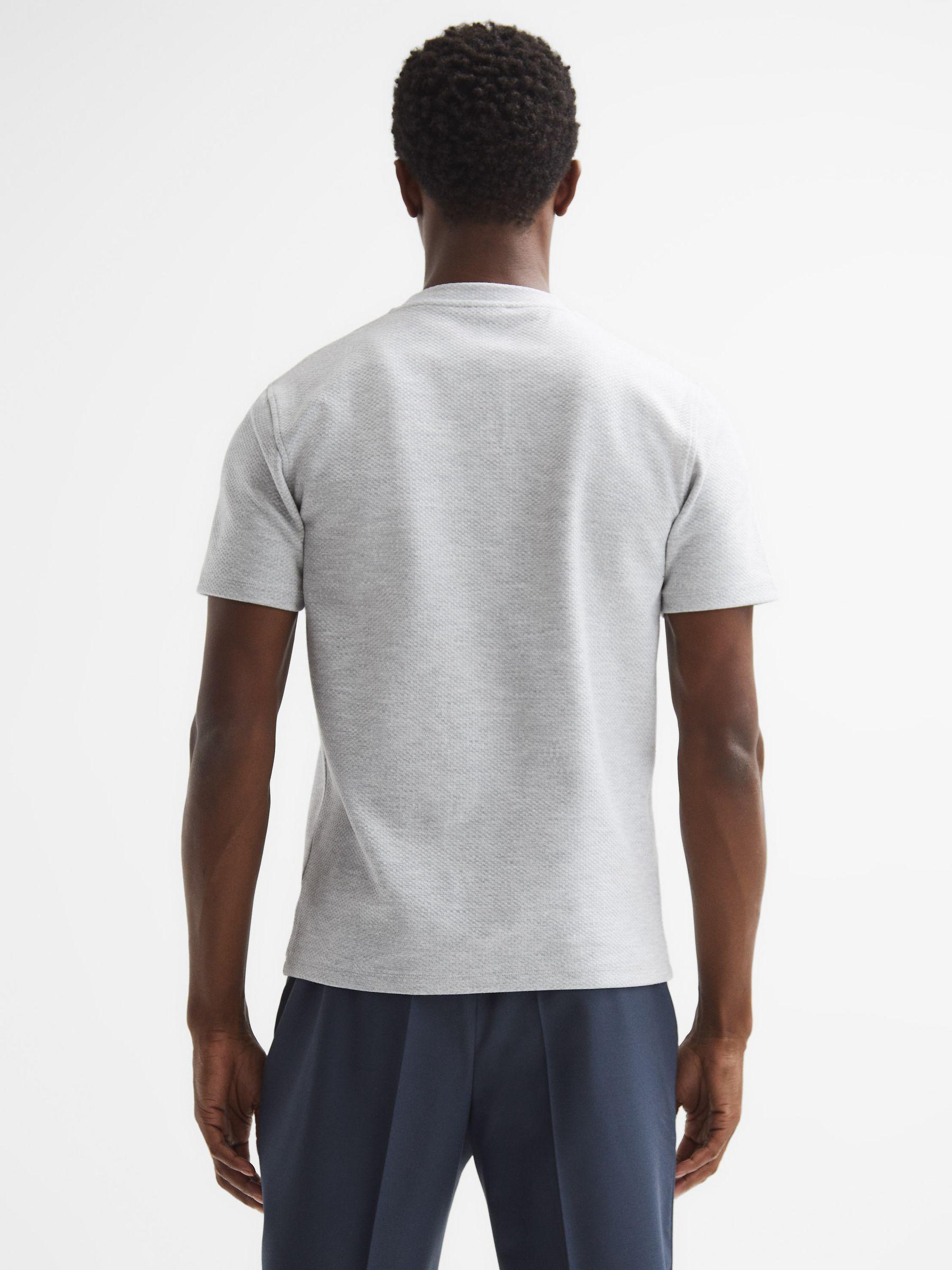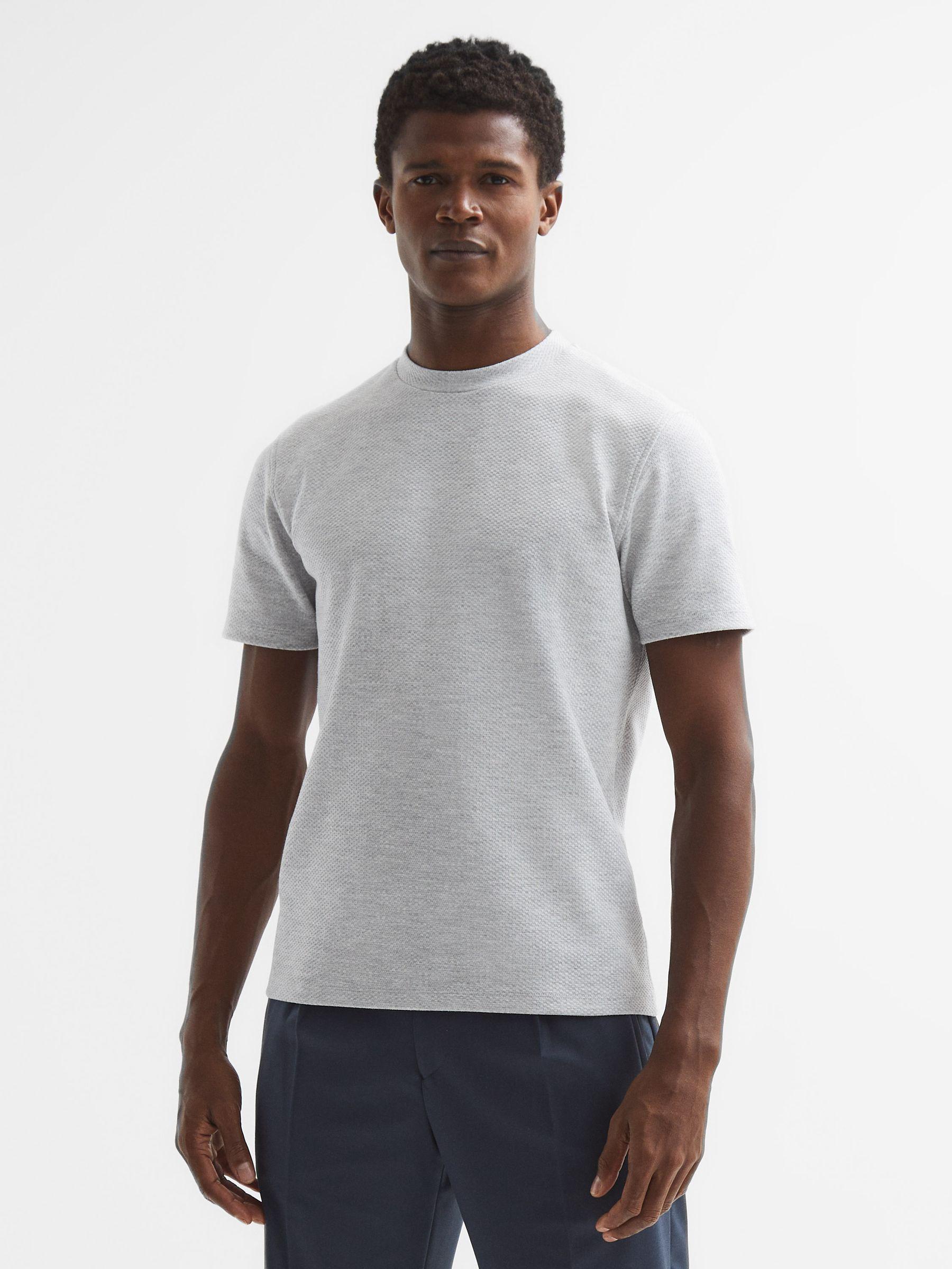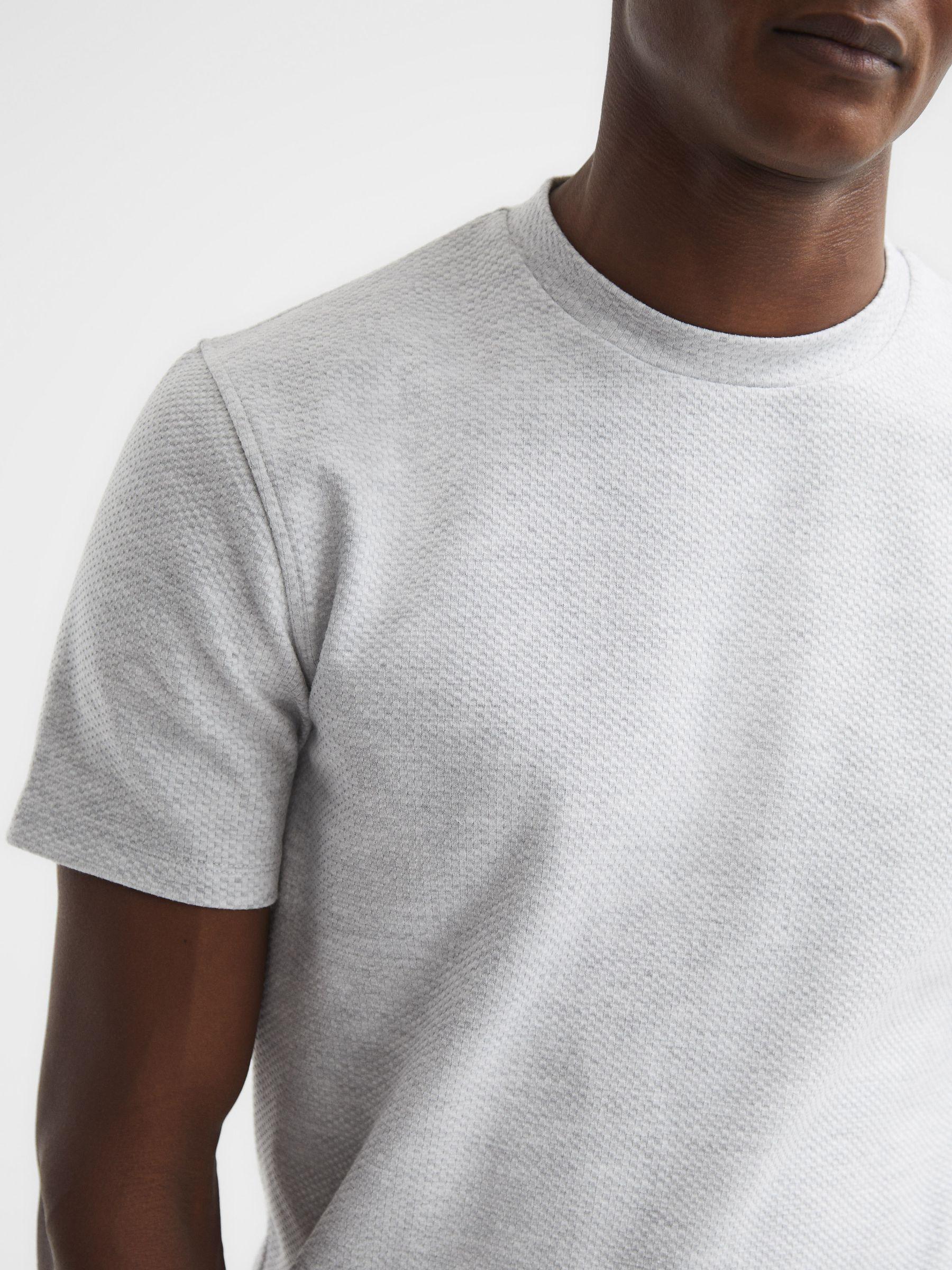 The Cooper T-Shirt in white is an elevated take on a classic shape. It's crafted from a soft cotton blend into a honeycomb-textured finish. Style it with chinos and a fresh pair of leather trainers for a sleek look. Crew neckline. Short sleeves. Cotton blend. Honeycomb texture. Regular fit. The model is wearing a size M Measurements of model: Height 6ft 2.5 / 189cm.