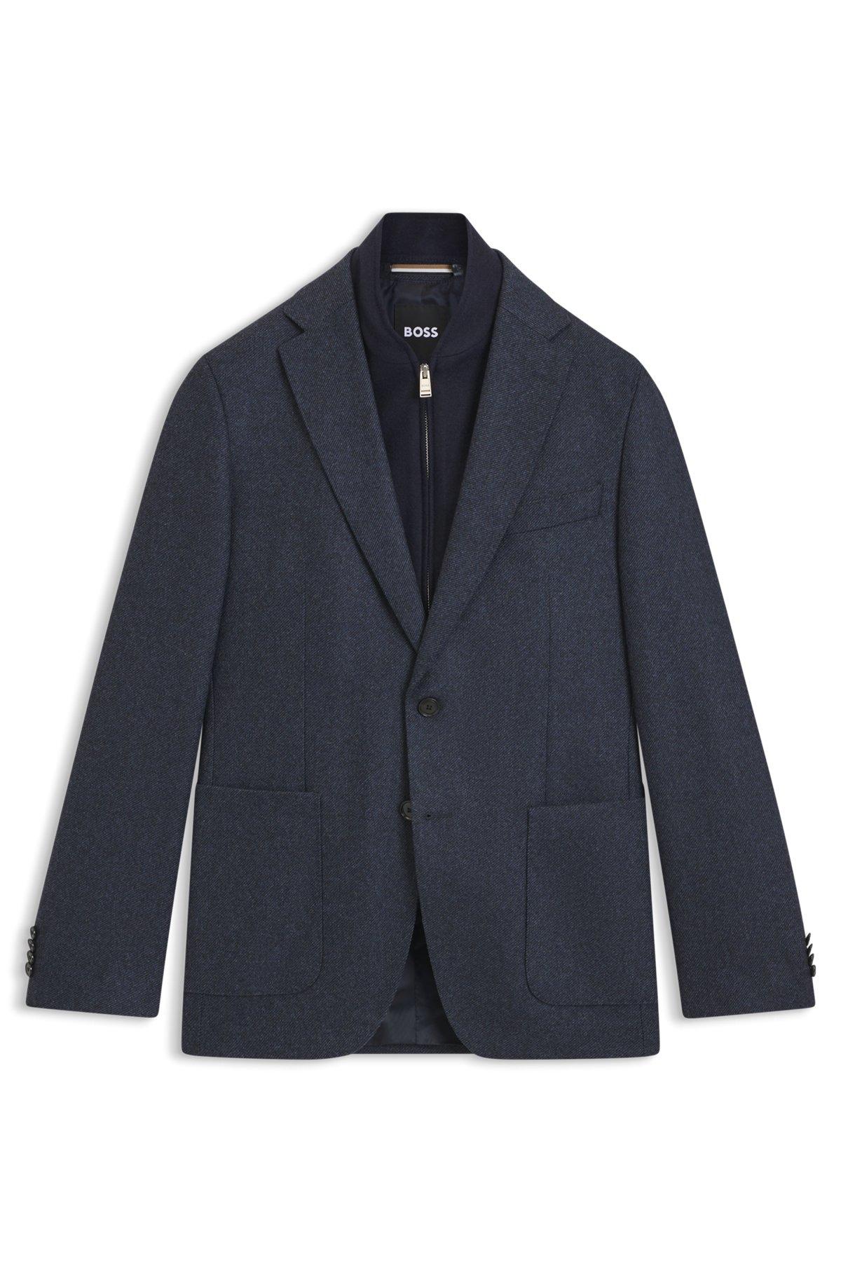 Featuring an integrated bib, this BOSS Menswear jacket is a versatile investment. Slim fit in a wool-rich blend with a light pattern.