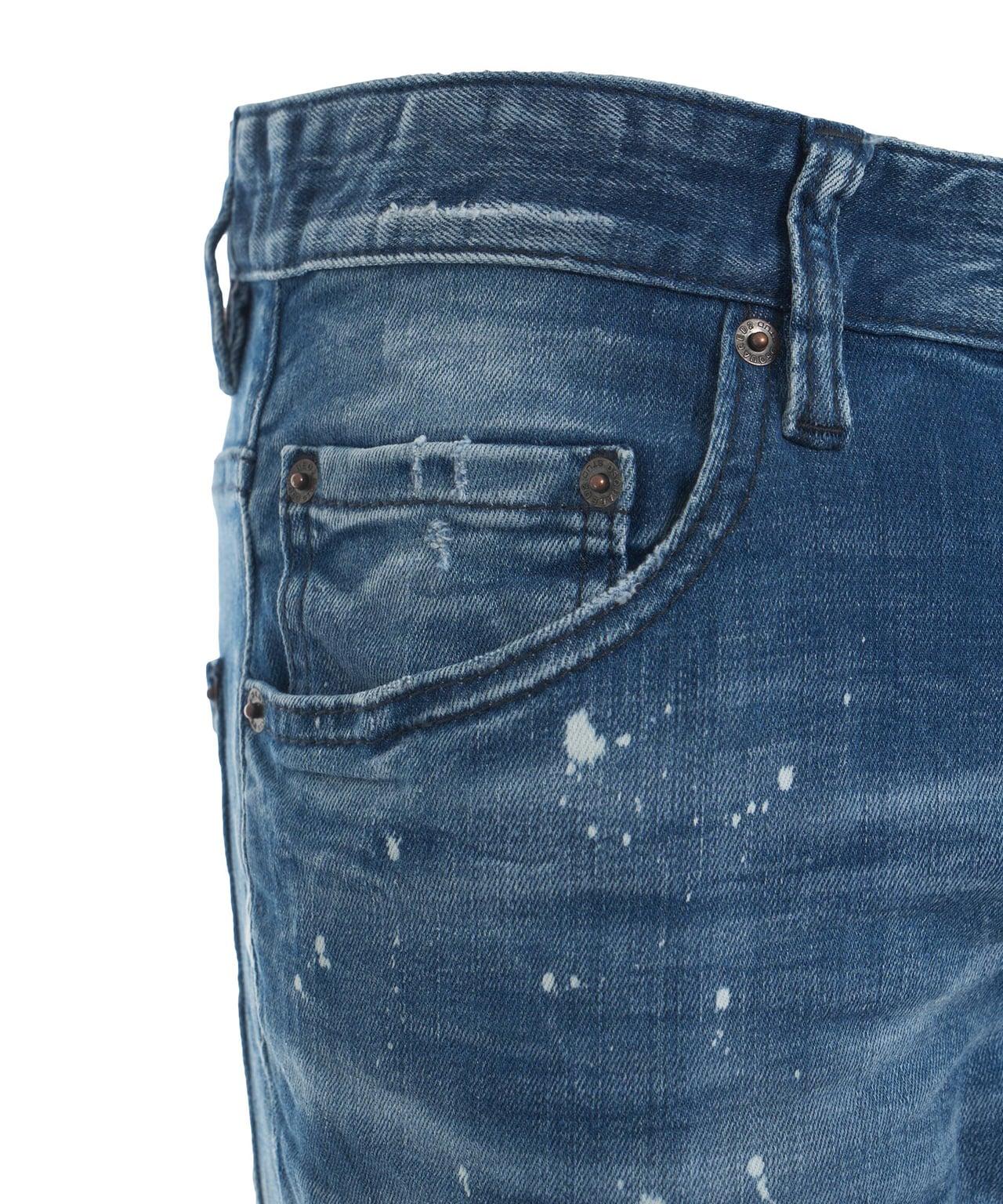 Belt loopsDestroyed areasButton closureLogo detailsLogo patchMade in ItalySlim FitWashed areasColour sprinklesStretchConcealed button front