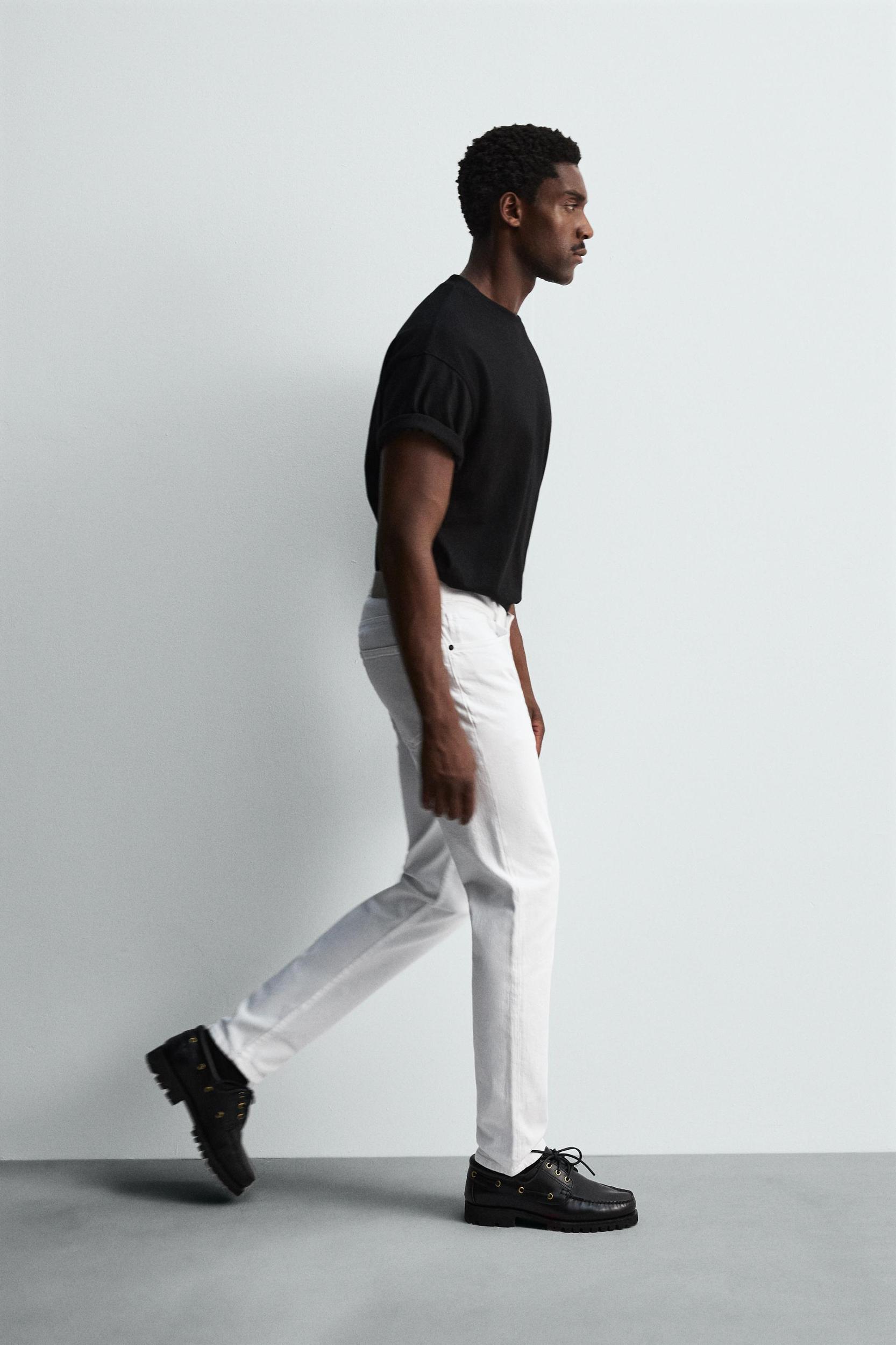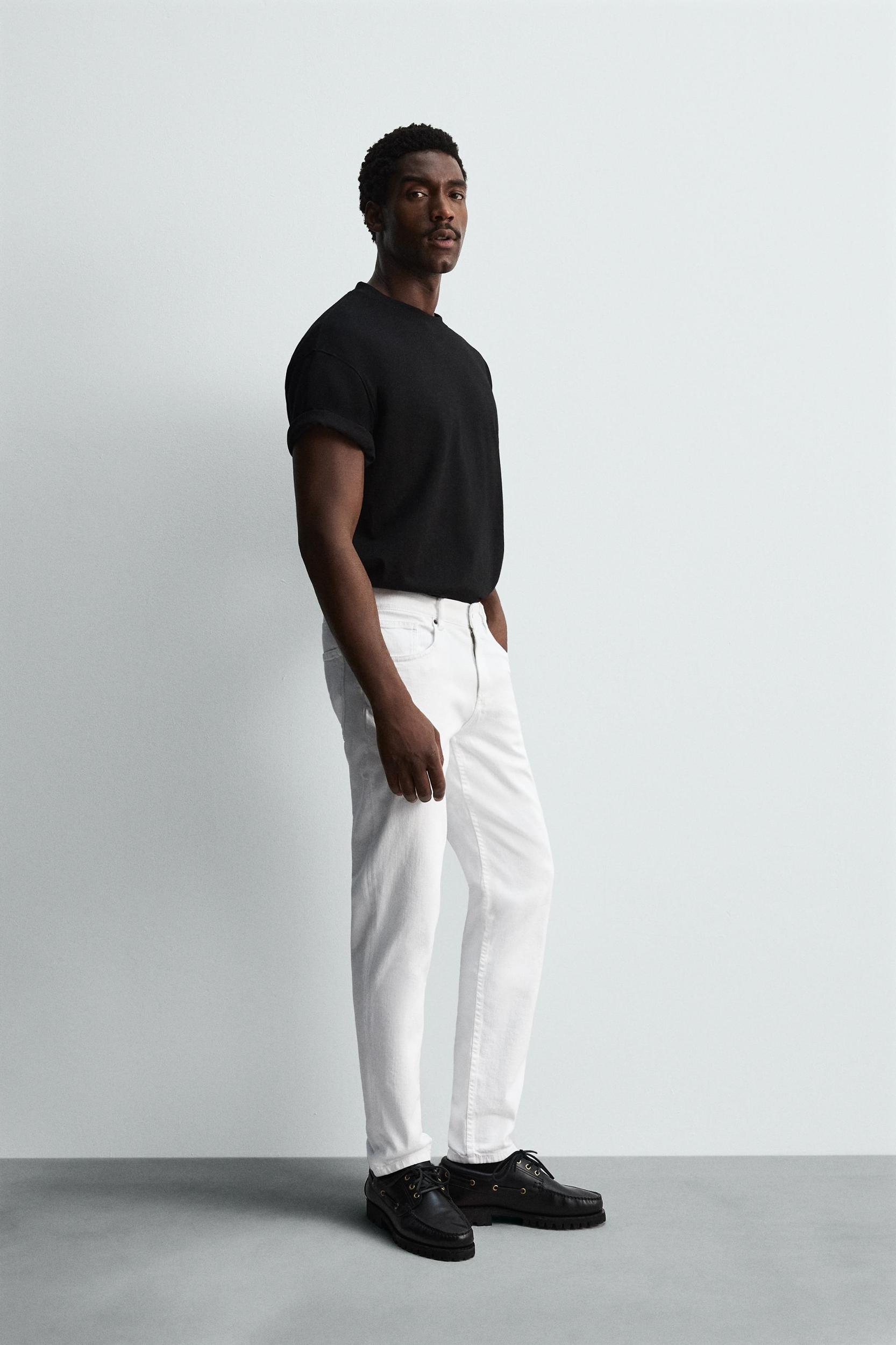 Slim fit jeans. Five pockets. Washed effect. Front zip and button closure.