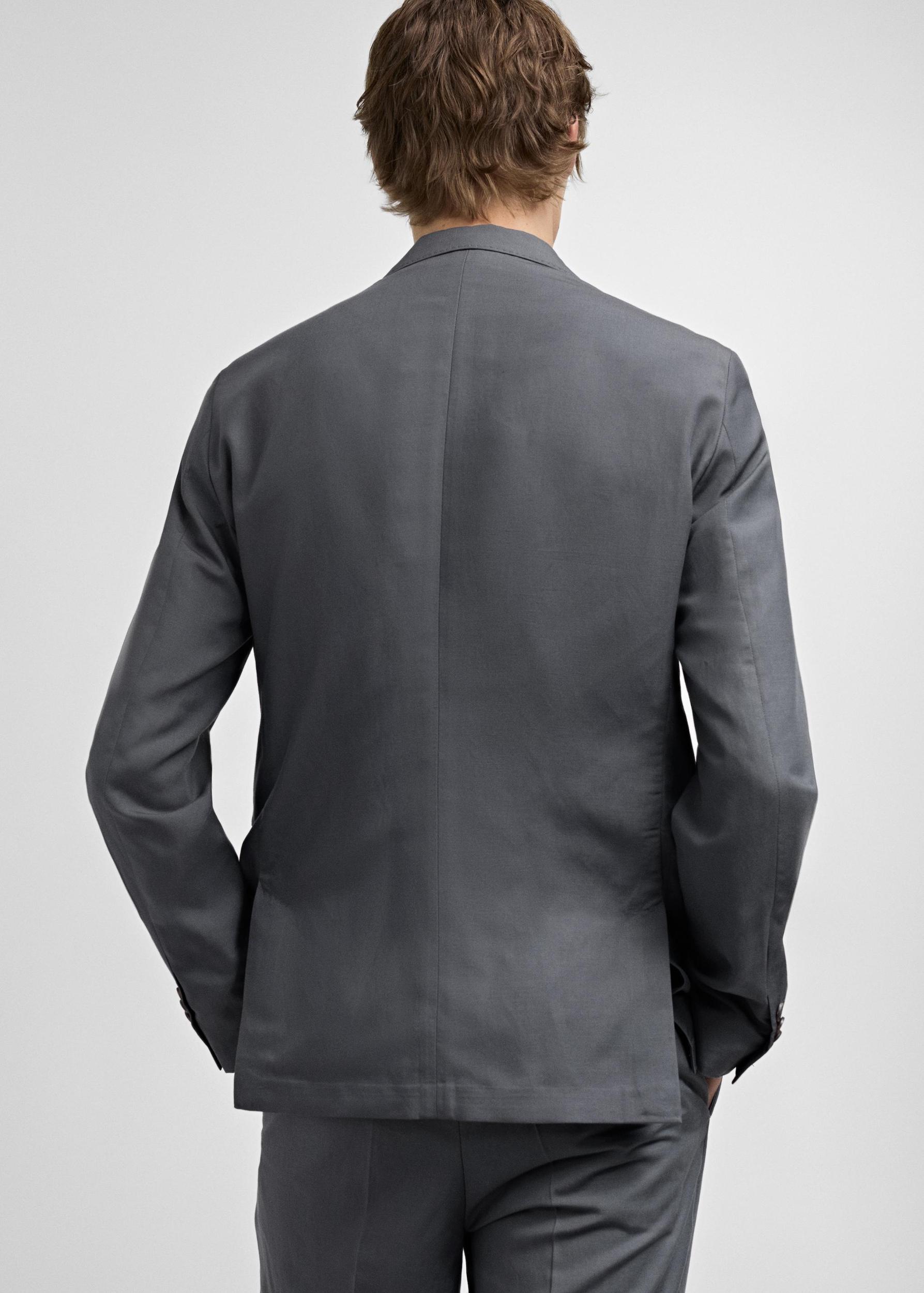 Slim fit, Notch lapels and buttonhole, Front button closure, Welt pocket on the chest, Two front flap pockets, Long sleeves with buttoned strip cuffs, Inner lining, Inner pockets, Hem with side openings, Tailoring collection, The model is 6'1" and is wearing a size 50, Slightly slim-fit, the Slim Fit suit fits a little closer to the body compared to the Regular Fit. Ideal for those who seek a plus from the classic-fit suit, without going so far as to create a tightly-fitted silhouette. The Slim-Fit suit follows the natural lines of the body, enhancing the figure and providing an elegant and modern look.