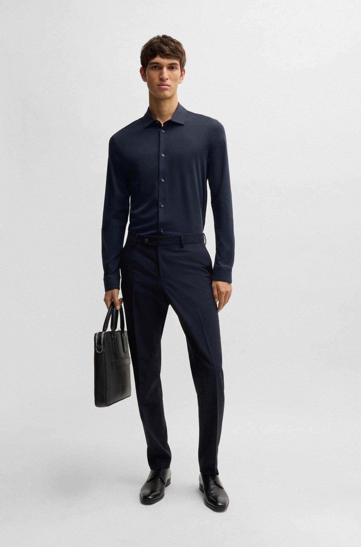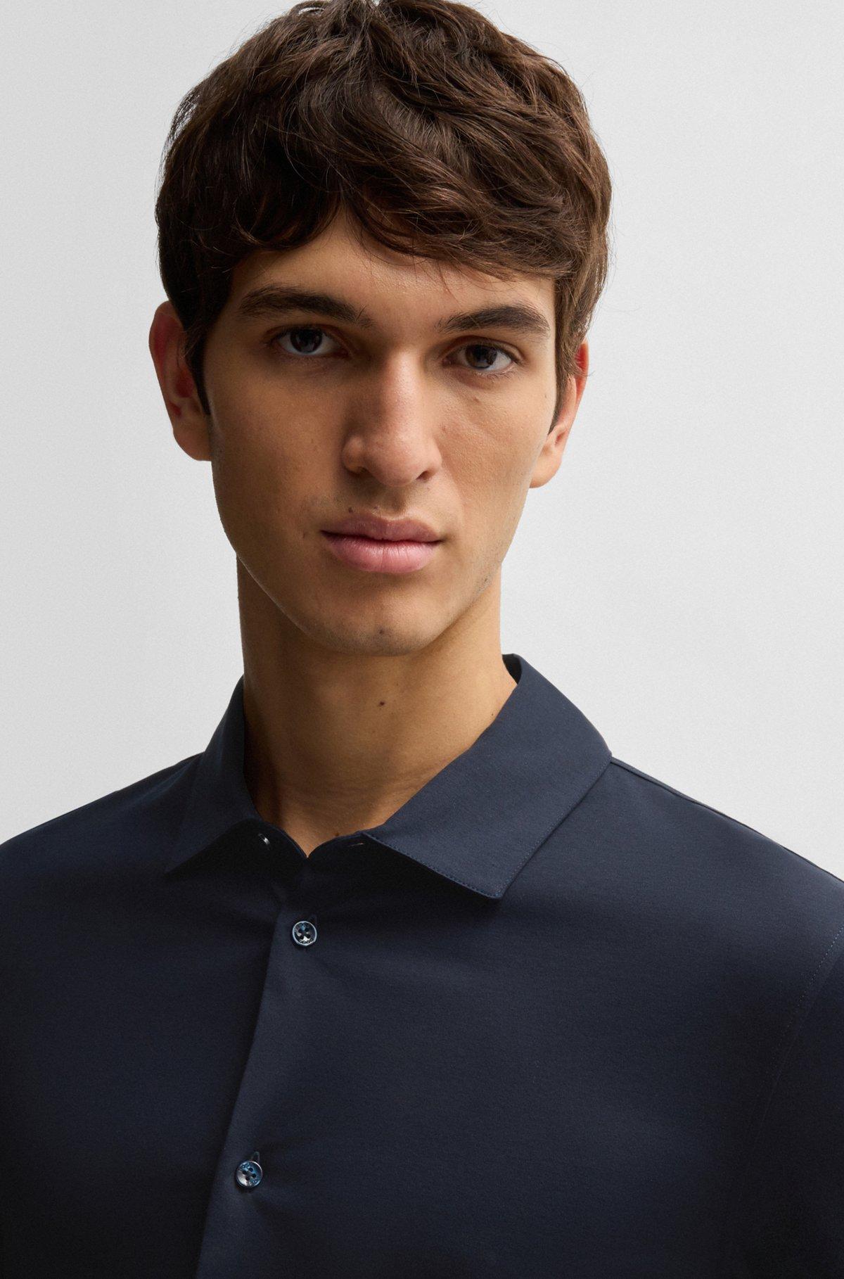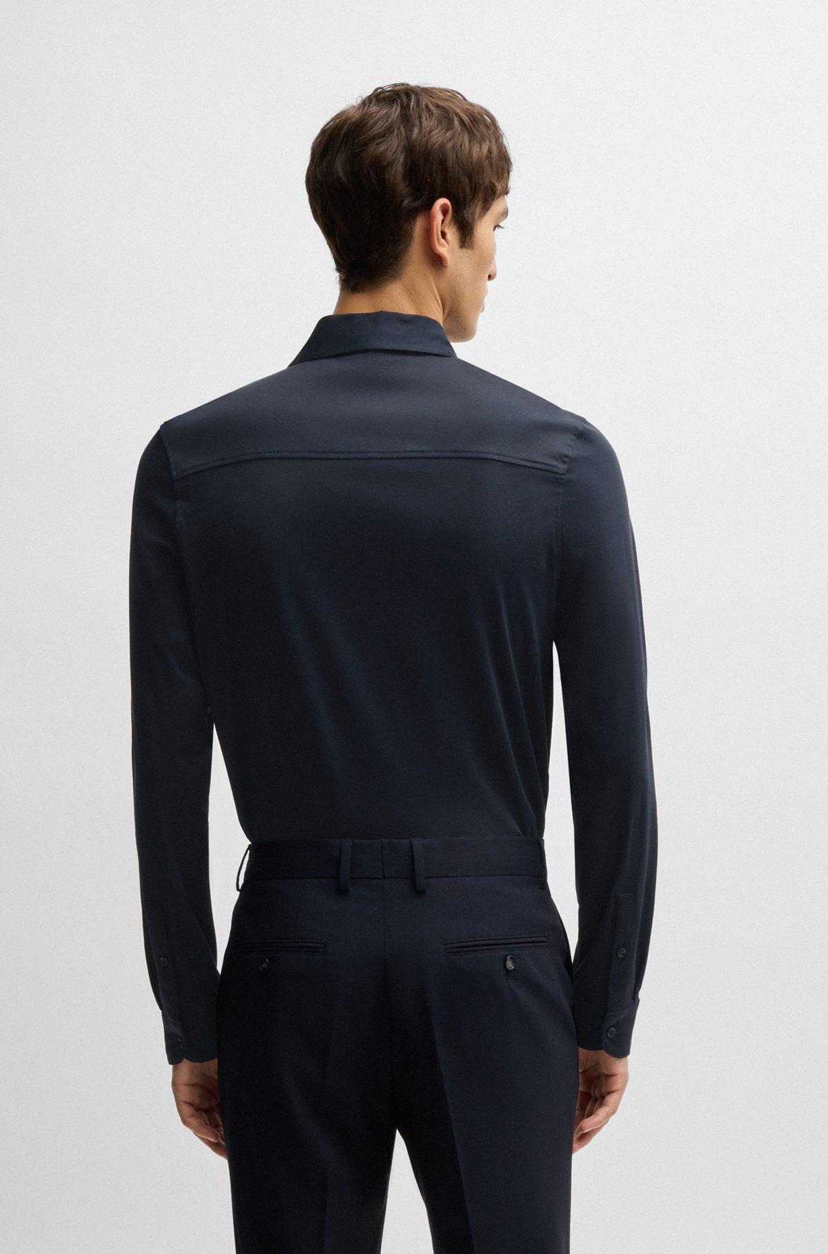 Slim-fit long-sleeved shirt in mercerized cotton - Dark Blue Casual Shirts from BOSS for Men for in the official HUGO BOSS Online Store free shipping