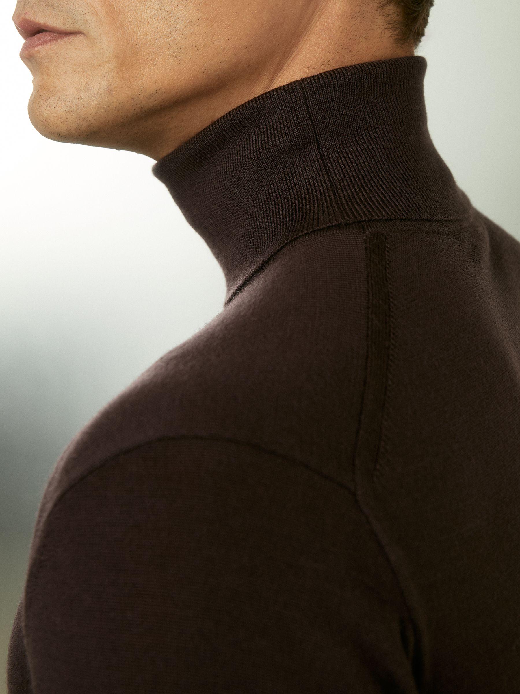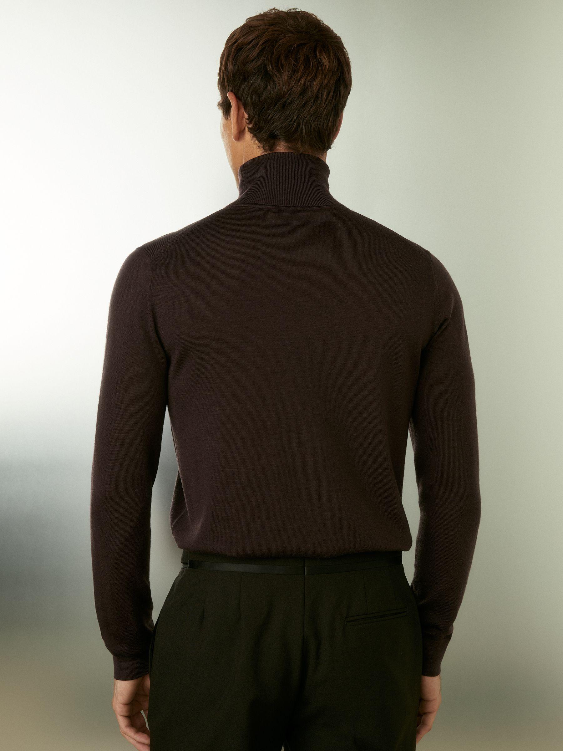 Slim Fit Merino Wool Roll Neck Jumper in Dark Bordeaux