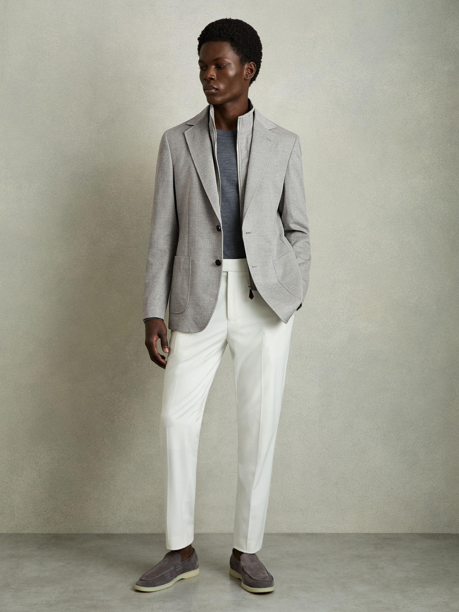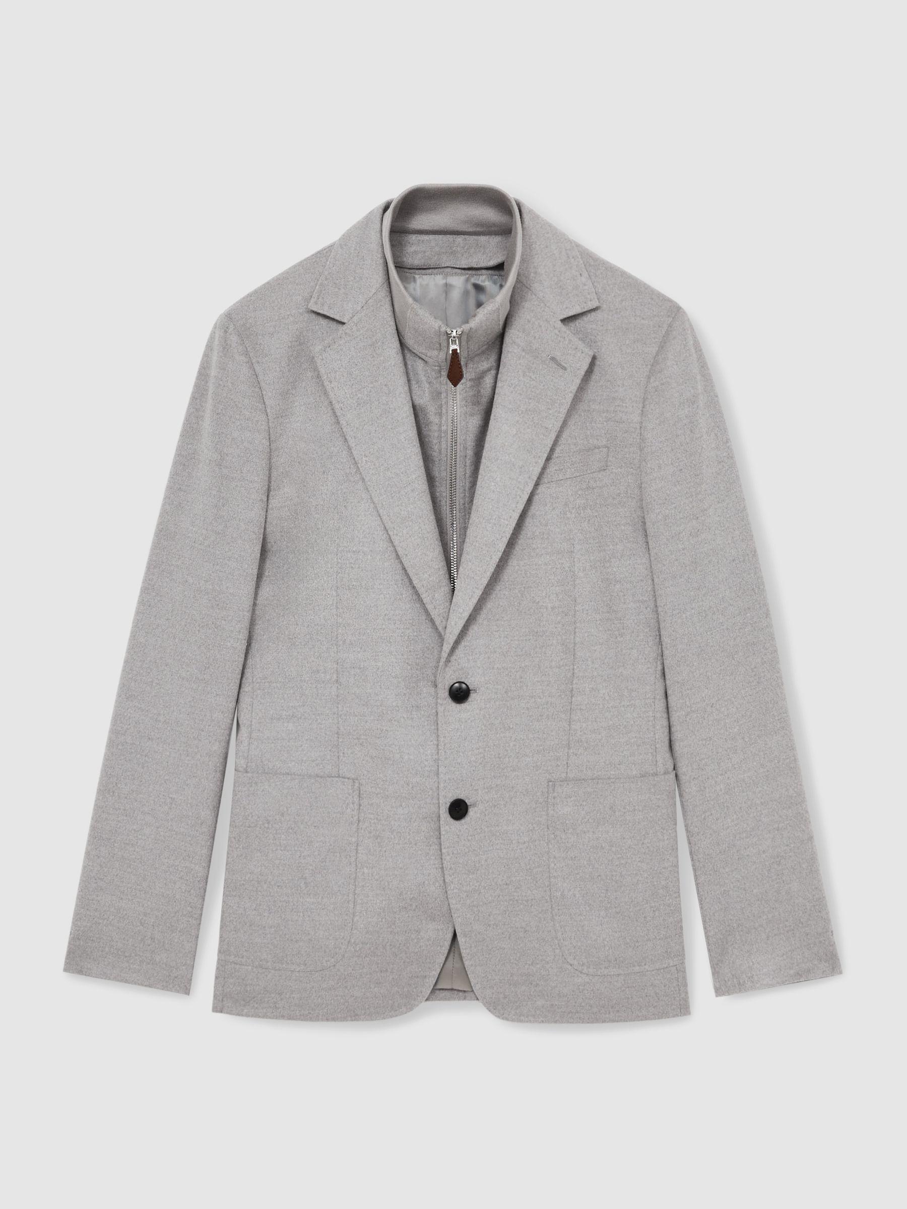 The Patch blazer offers a versatile design with a detachable gilet insert, allowing it to transition seamlessly from casual to formal wear. The zippered funnel-neck adds warmth and a sporty edge, whilst classic details like notched lapels and a double vent maintain a tailored finish. Made with woo. l Single-breasted. Removable gilet insert with zip. Notched lapels. Buttoned cuffs. Patch pockets. Double vent to reverse.