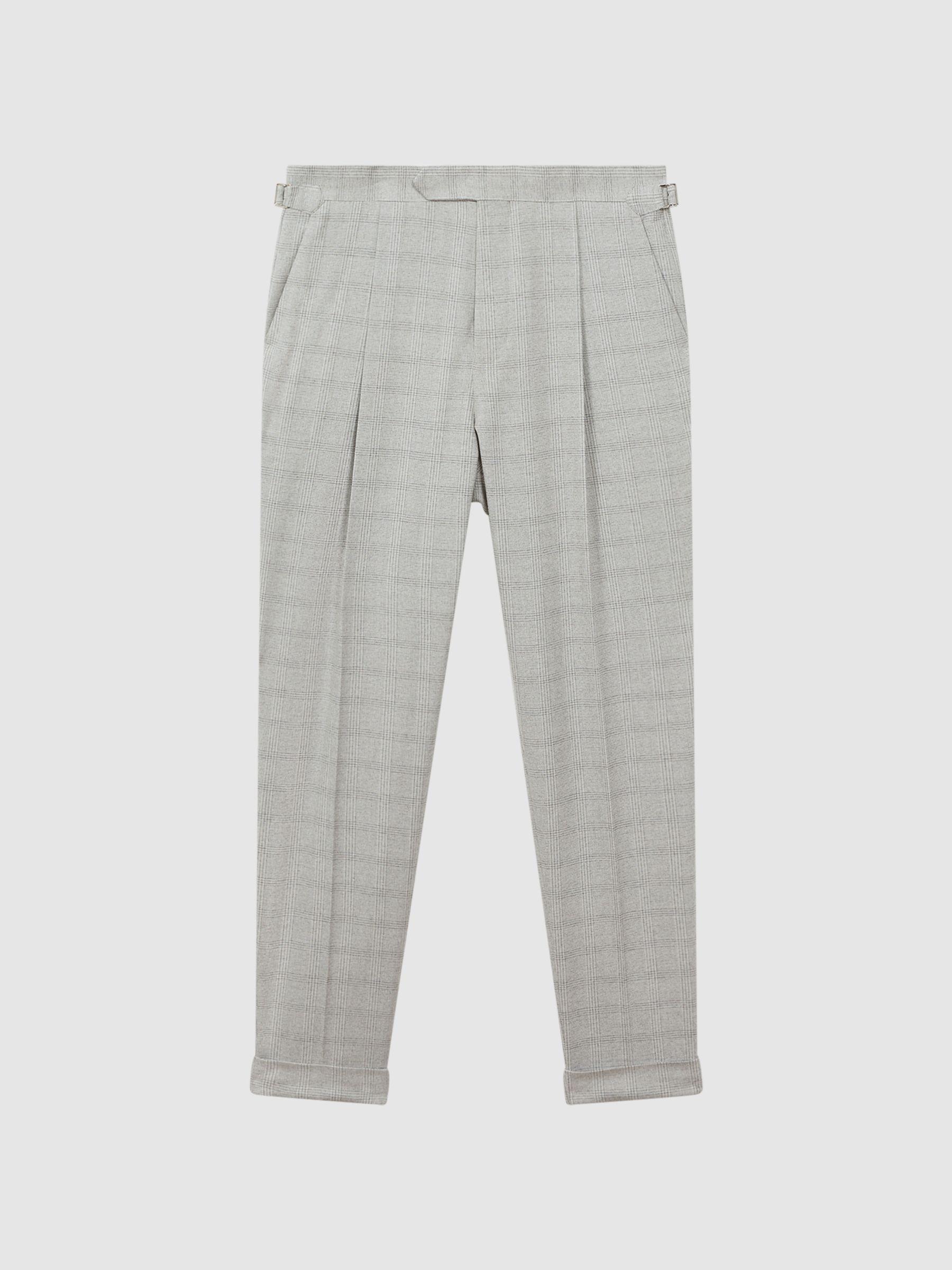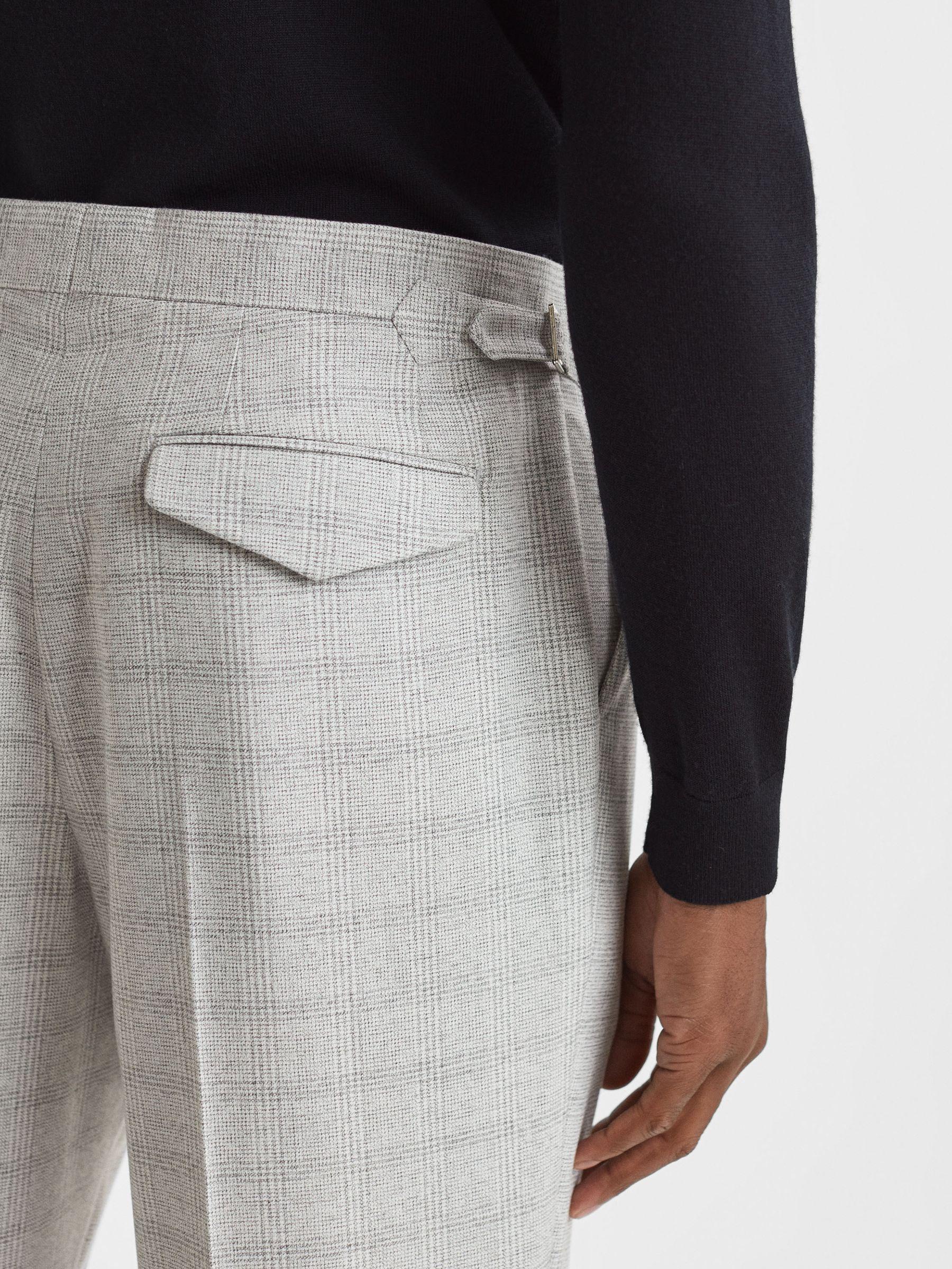 These slim-fit Ridge trousers feature a signature Prince of Wales check design and front pleats. Side adjusters perfect the shape and the hems are rolled for a preppy influence. Prince of Wales check design Side adjusters Front pleats Side-slip pockets Buttoned flap pocket to reverse Rolled hems Slim fit
