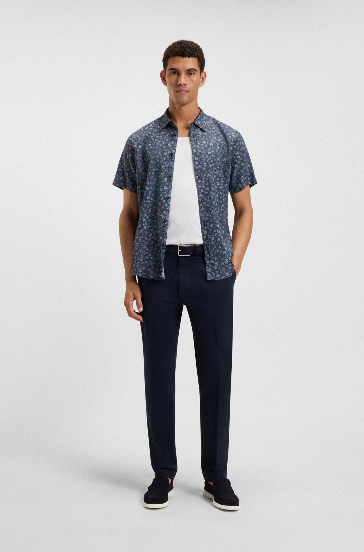 Slim-fit shirt in floral-print stretch linen