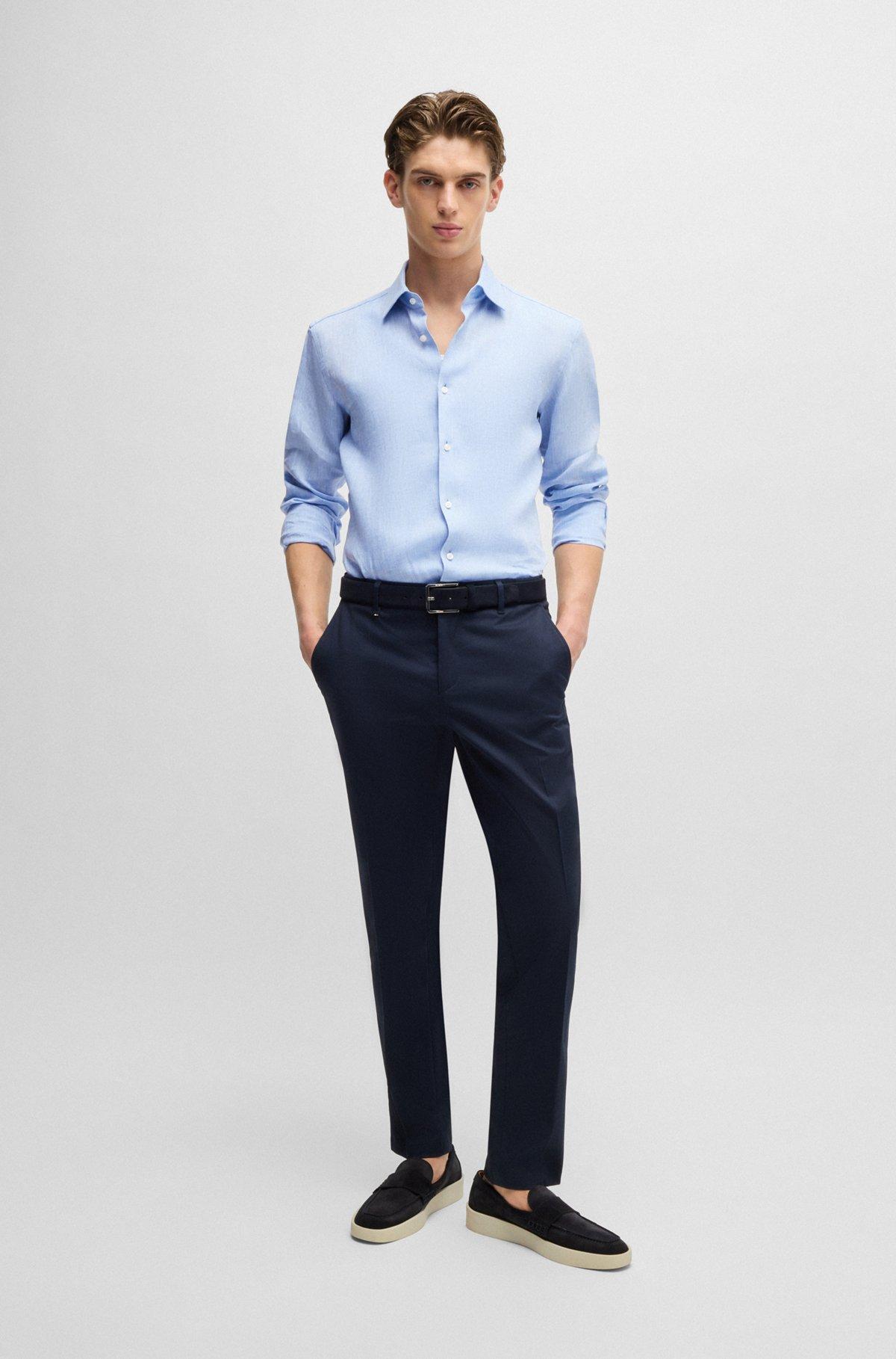This BOSS Menswear shirt is crafted in Italian-made linen for effortless summertime elegance. Cooling breathability and a clean slim fit.