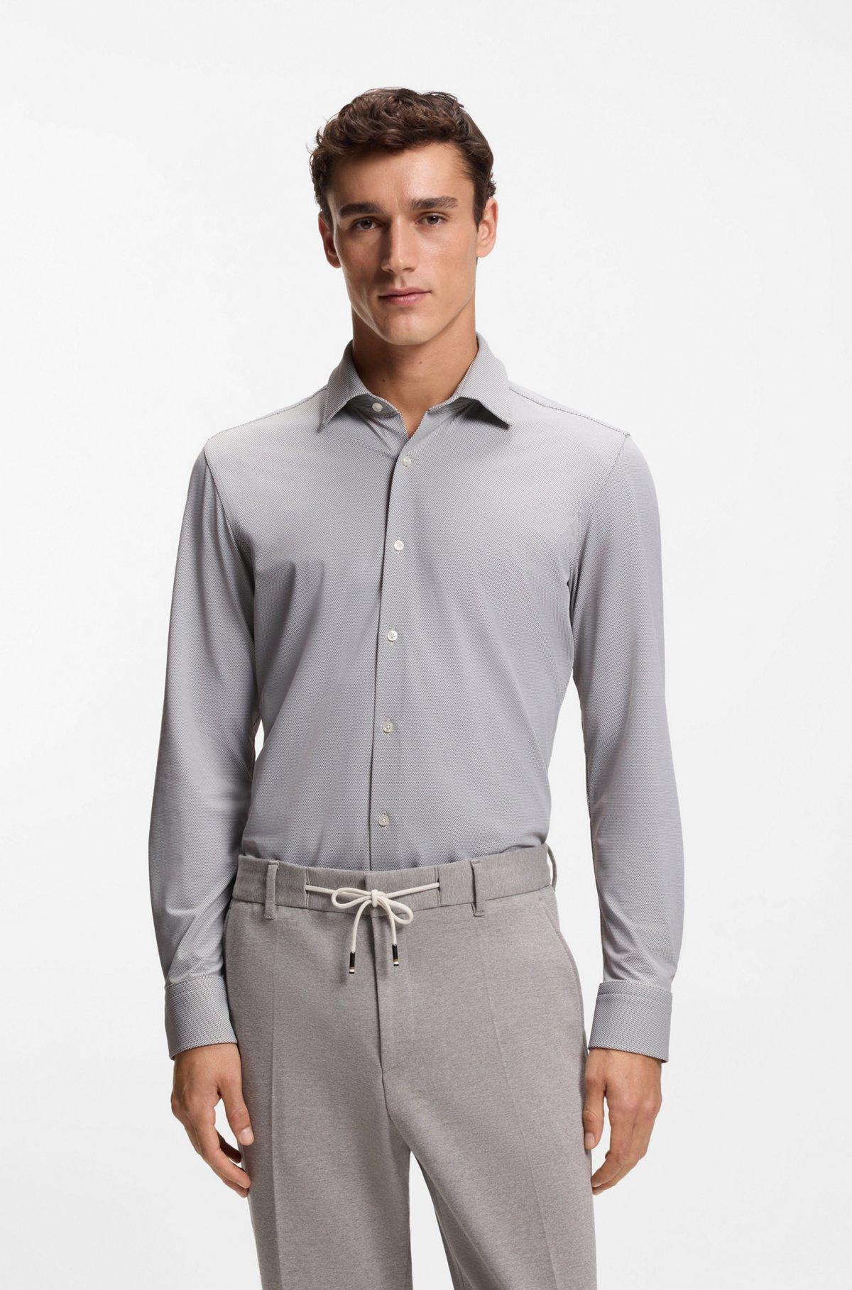 Cut to a streamlined fit in Italian-made fabric, this BOSS Menswear shirt has generous stretch for everyday comfort. Woven structure. Effective moisture management.
