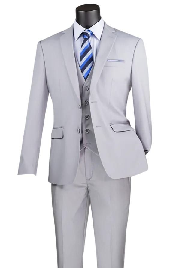 Slim Fit Suit 3 Piece 2 Button in Light Gray
