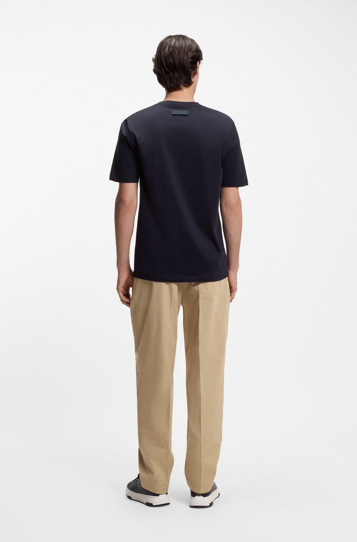 With tonal logo tape, this slim-fitting stretch HUGO Menswear T-shirt is a true all-rounder. Rich in mercerized cotton for extra softness.