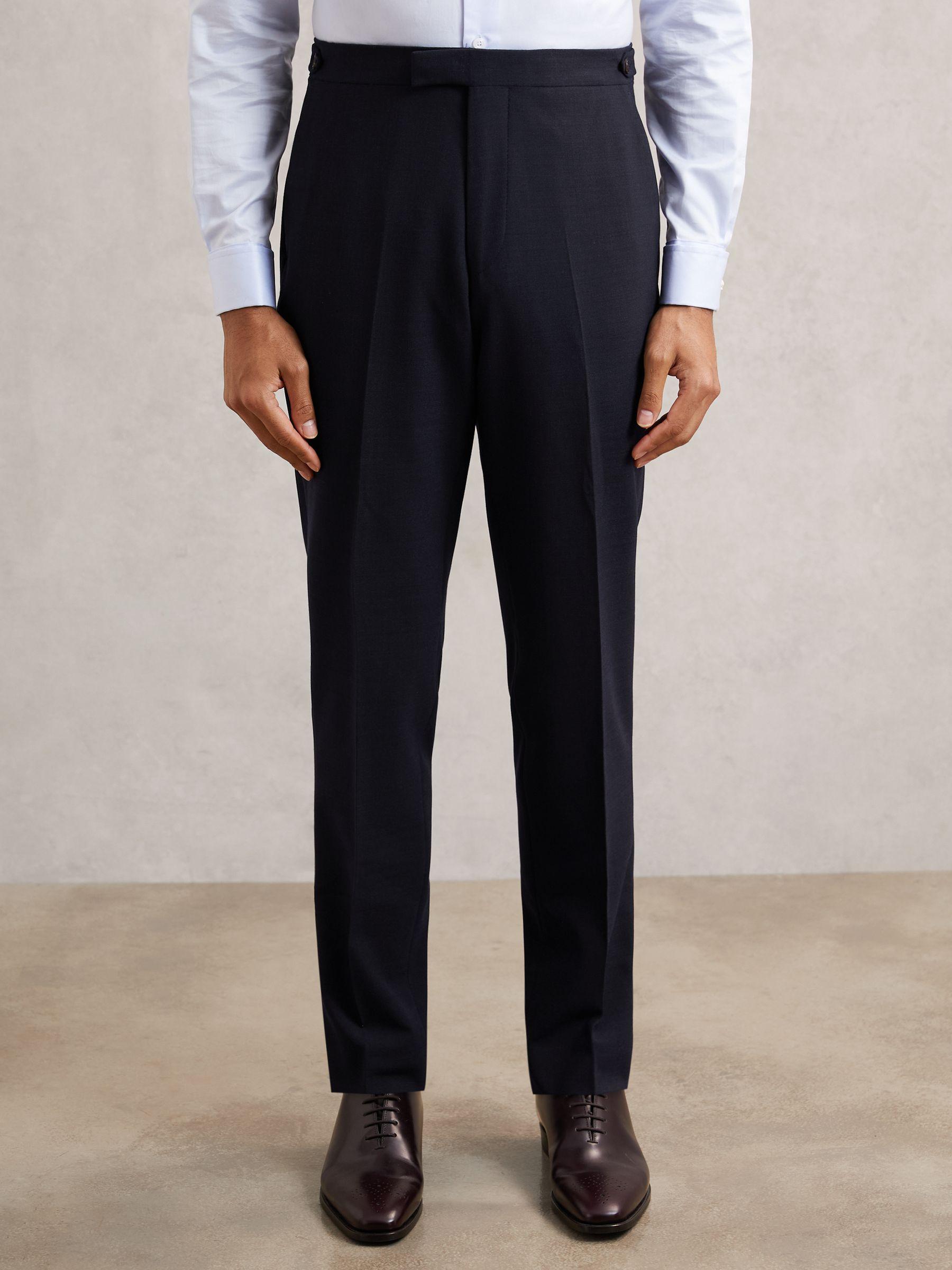 Slim-Fit Textured Suit Trousers With Wool in Navy