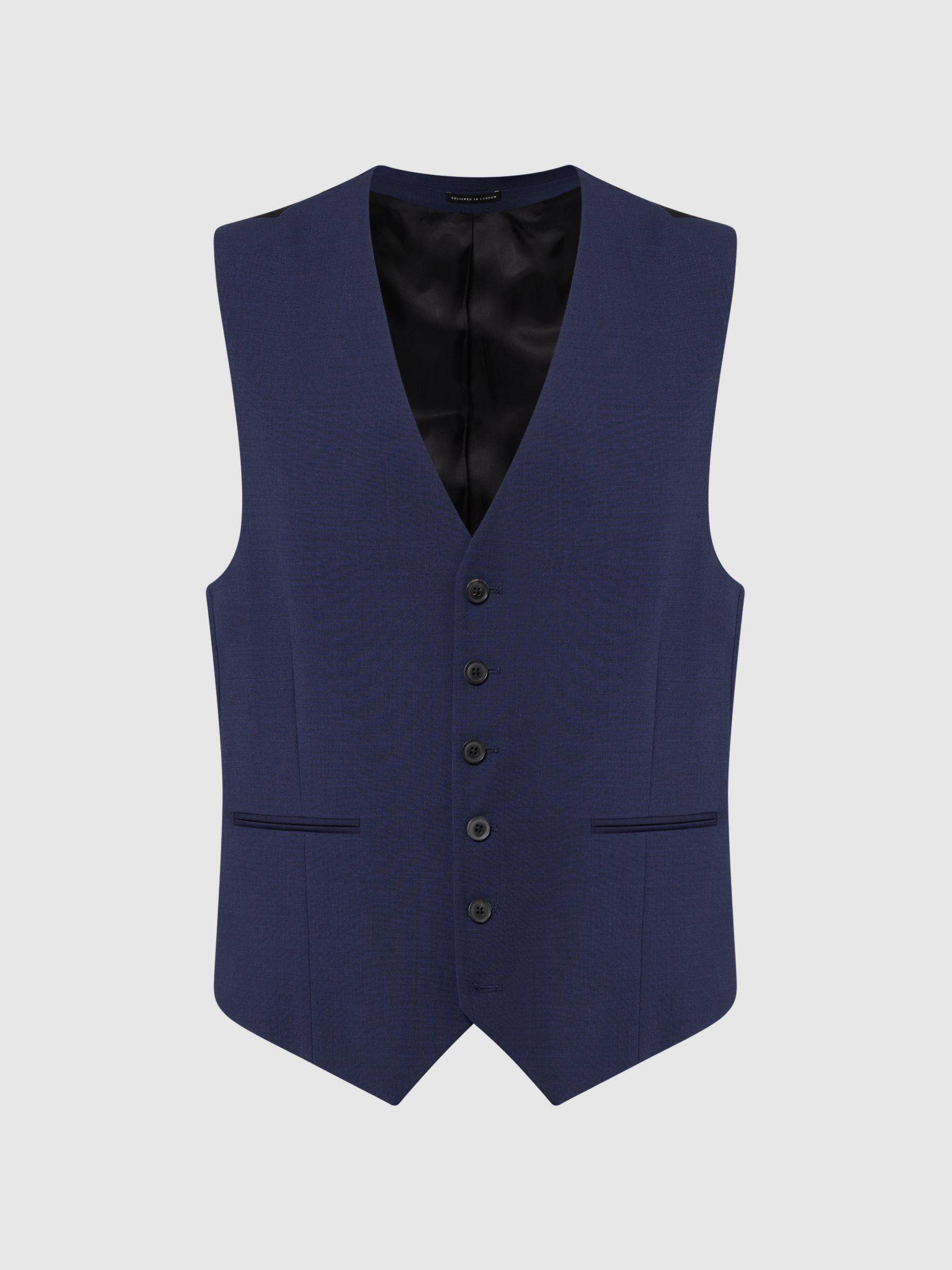 The Wish waistcoat in soft blue is a formalwear staple, suitable for office days and special occasions alike. It’s crafted from a wool blend into a slim-fit silhouette, ideal for layering under the coordinating blazer. Choose a patterned tie from our selection to complete the look. Wool blend 5 button closure. Jetted pockets. Slide adjuster to reverse. Slim fit.