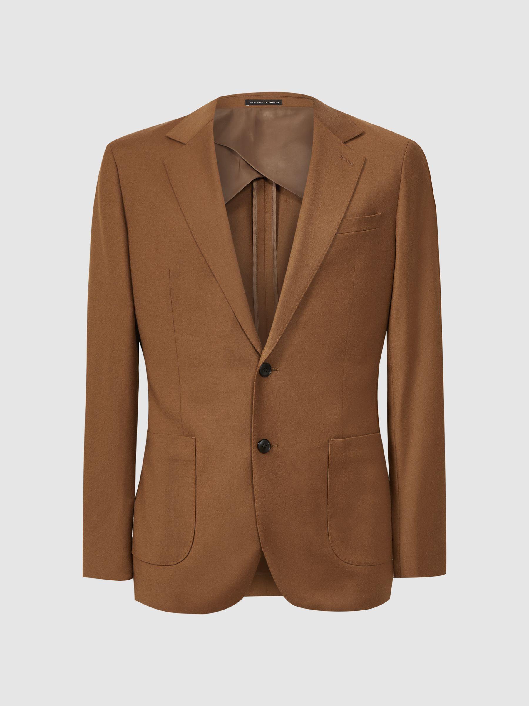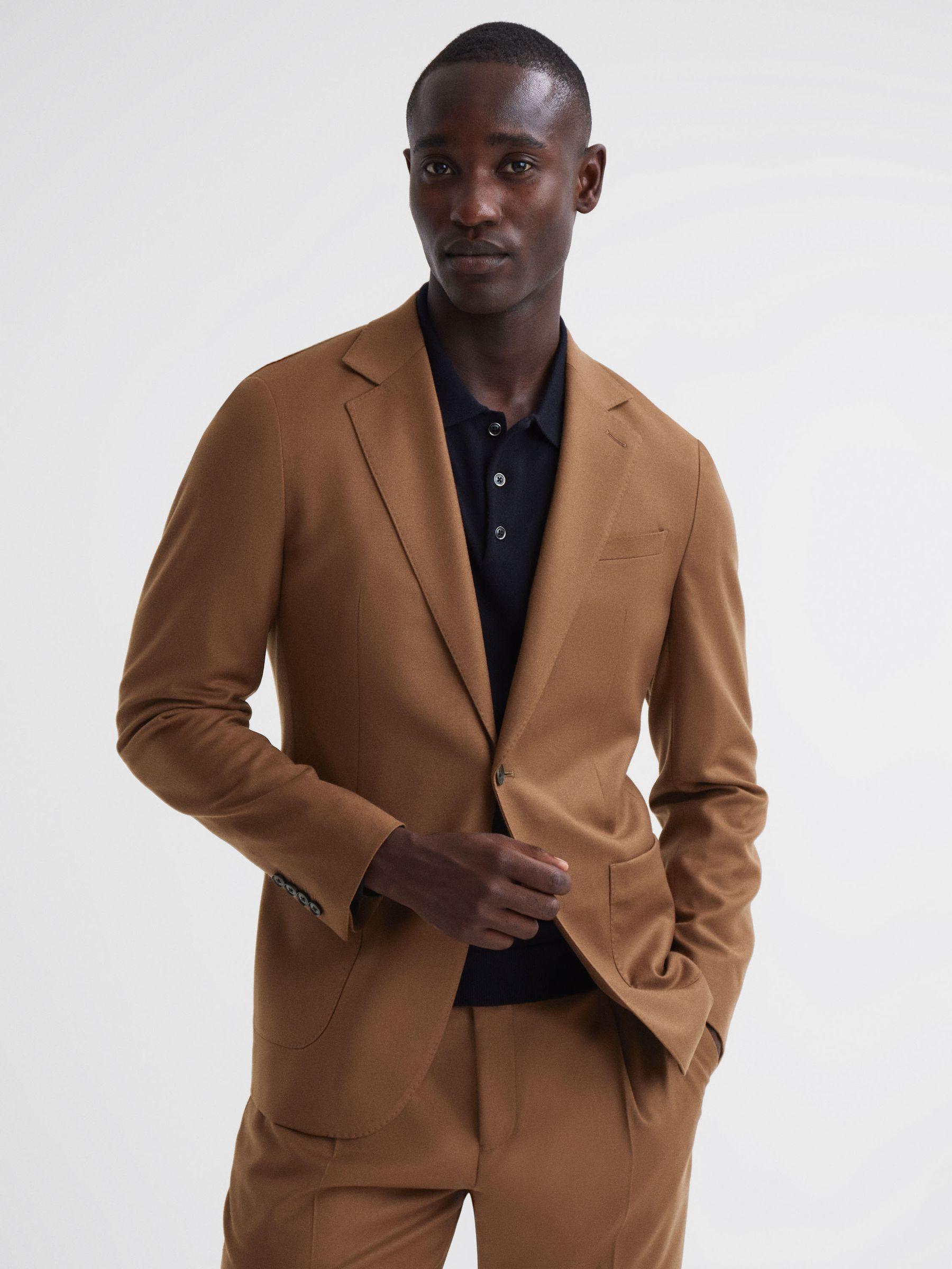 Choose the Venue blazer in tobacco for smart-casual perfection. Its luxe wool-blend fabrication is cut into a single-breasted shape and tailored into a slim fit. Secure the style with its dual-button fastening and pair with the coordinating trousers. Or, stick to a more laidback agenda with jeans. Wool blend Single breasted Notch lapels Dual-button fastening Patch pockets Long sleeves Vents to reverse Buggy lining Slim fit