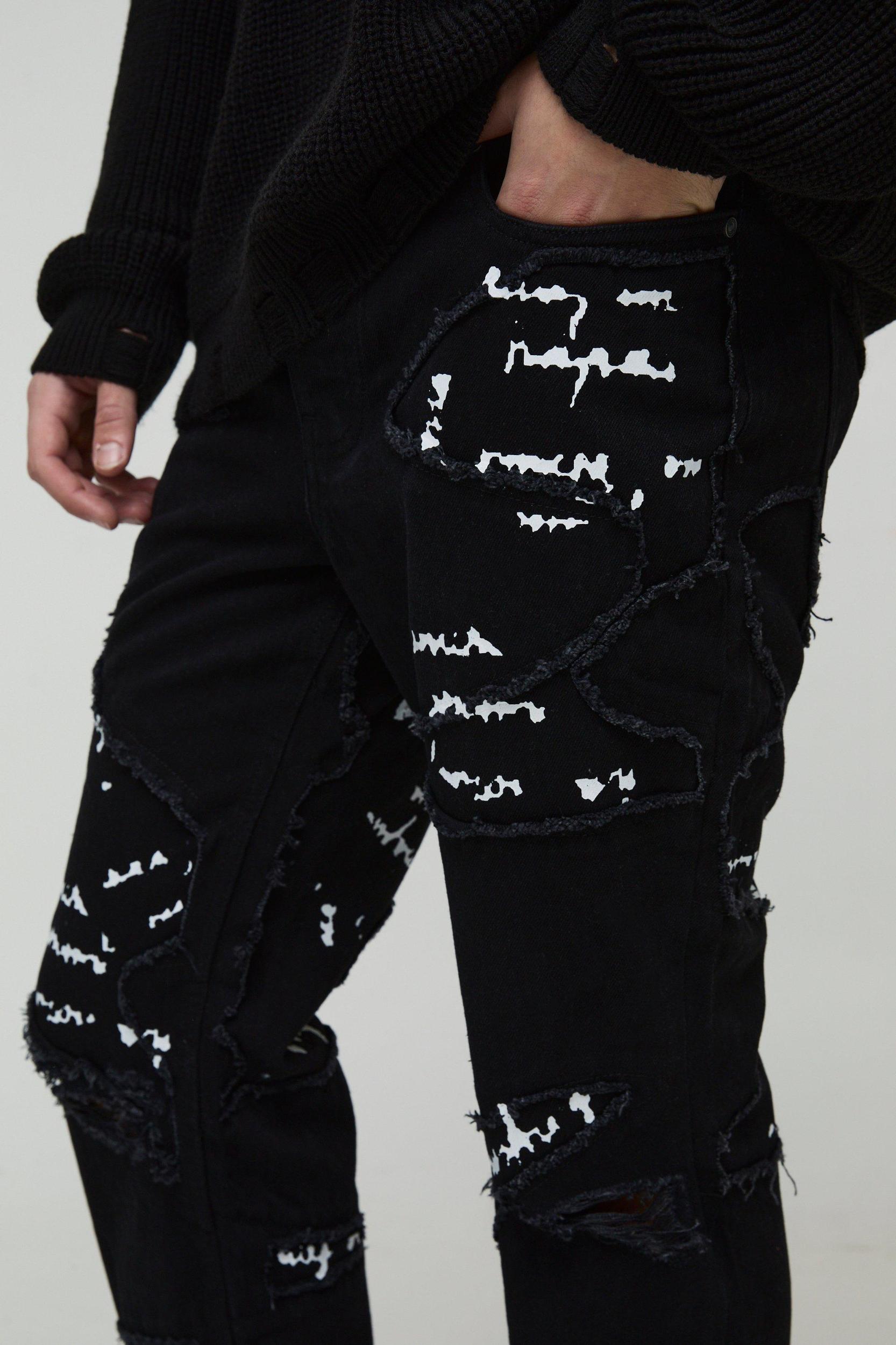 Lockdown your denim. Make sure you look the best dressed wherever you're heading this SZN with our men's fashion jeans. Fashion jeans stand out for their ability to make a statement while offering comfort and durability. They bring an edge to your wardrobe, allowing you to experiment with different looks, whether you're aiming for street-style chic or casual sophistication. Style a pair of printed jeans up with an oversized tee and chunky sneakers, you won't be missed.Style: Detail JeansDesign: GraphicFabric: DenimDetail: PatchworkLength: Regular