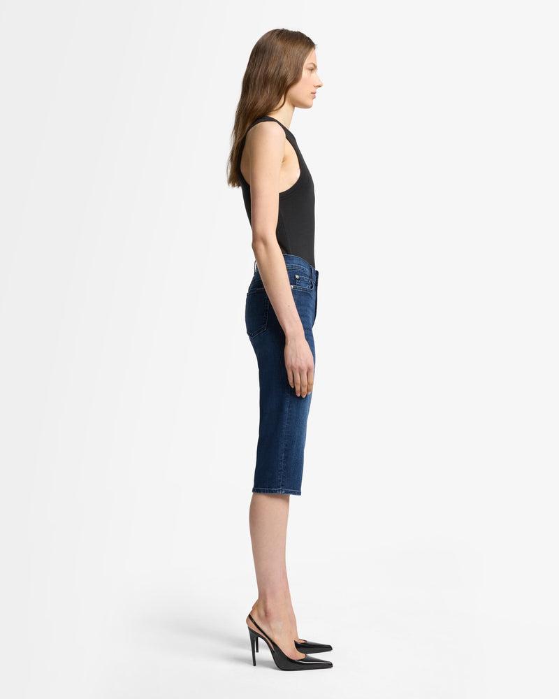 Fits like: A chic, skinny silhouette designed to sit close to the body, with a cropped cut that lengthens and flatters. Feels like: Soft, supportive denim that hugs in all the right places — designed to slim and define. The Details: Dark Indigo Wash Whiskering and sanding along the hips and legs Zip fly with button clo