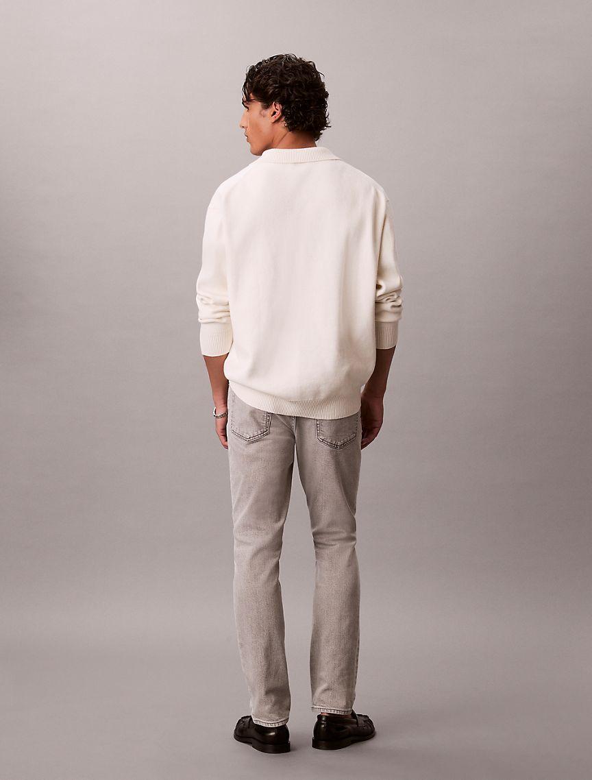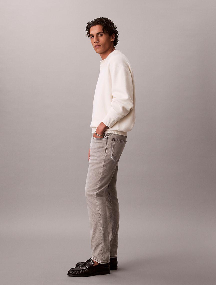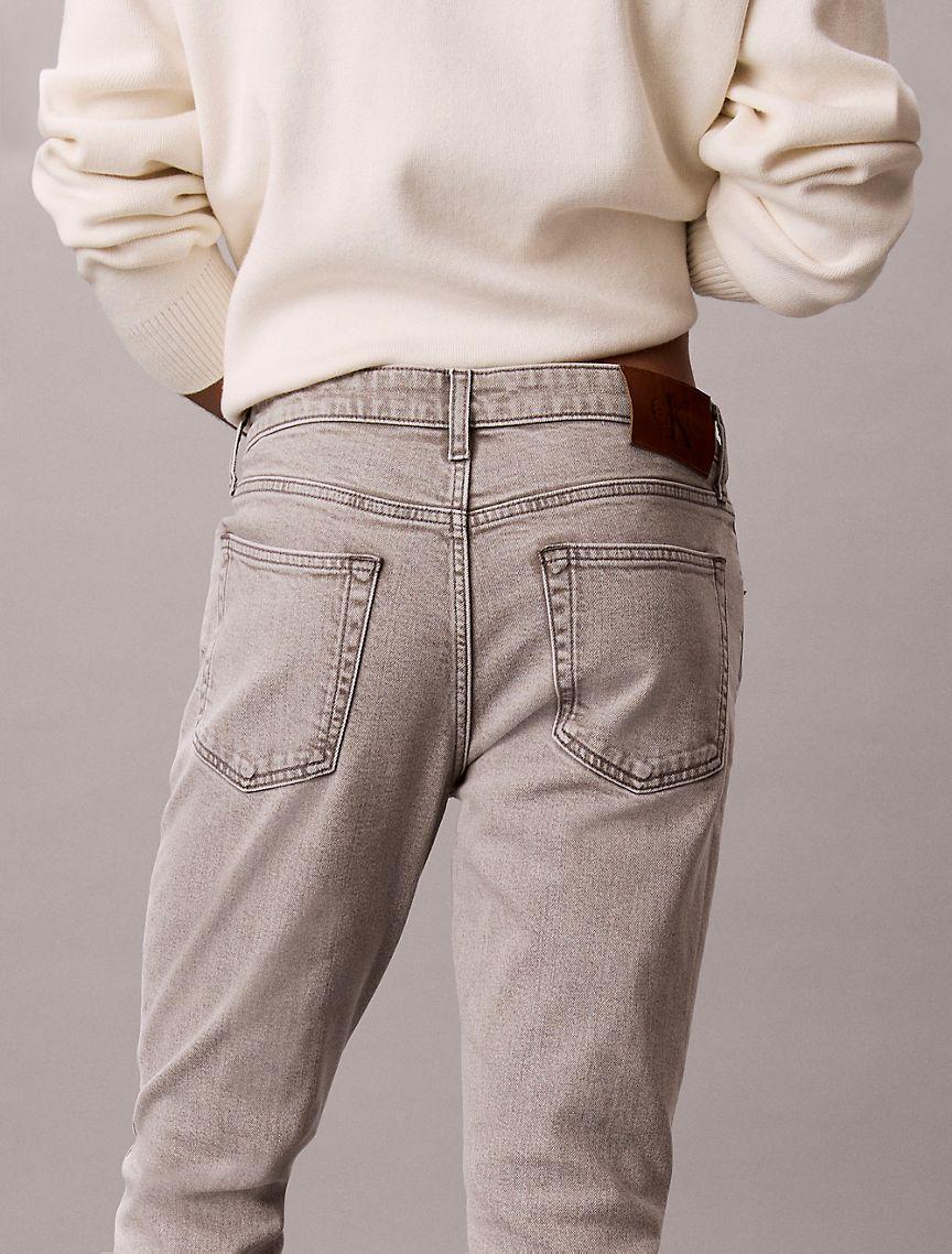 An iconic essential, our reimagined jeans are made with flexible stretch denim for enhanced movement and all-day comfort. Updated with signature metal logo hardware, a Calvin Klein hallmark. Cut in a slim fit with considered detailing and reinforced seams.