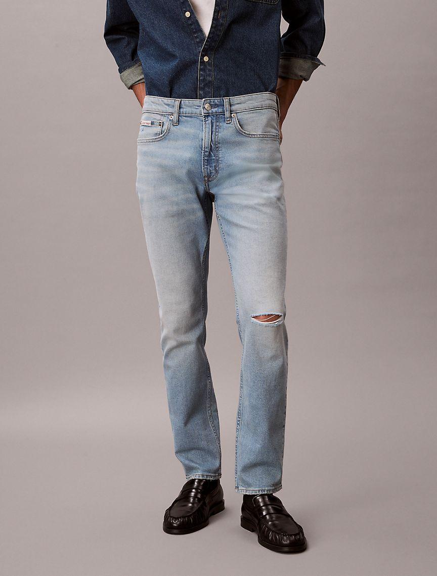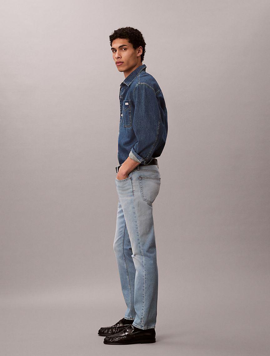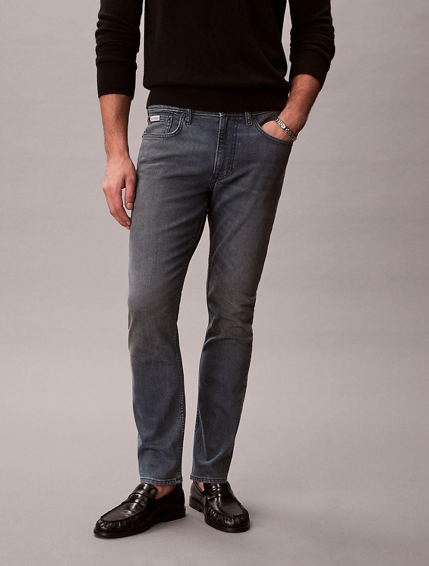 An iconic essential, our reimagined jeans are made with flexible stretch denim for enhanced movement and all-day comfort. Updated with signature metal logo hardware, a Calvin Klein hallmark. Cut in a slim fit with considered detailing and reinforced seams.