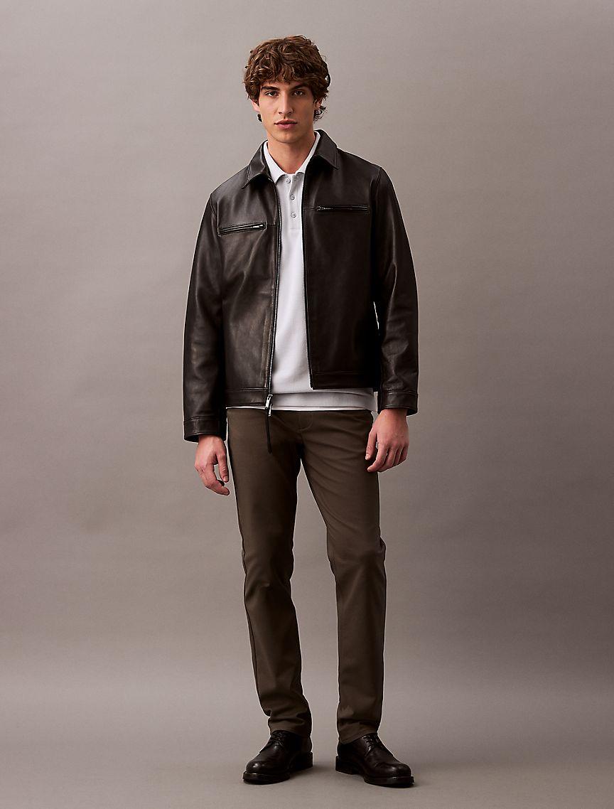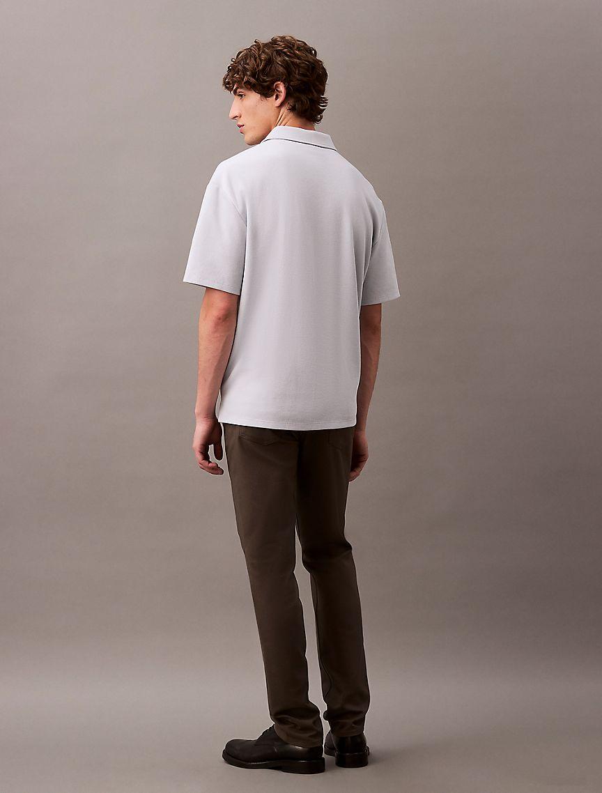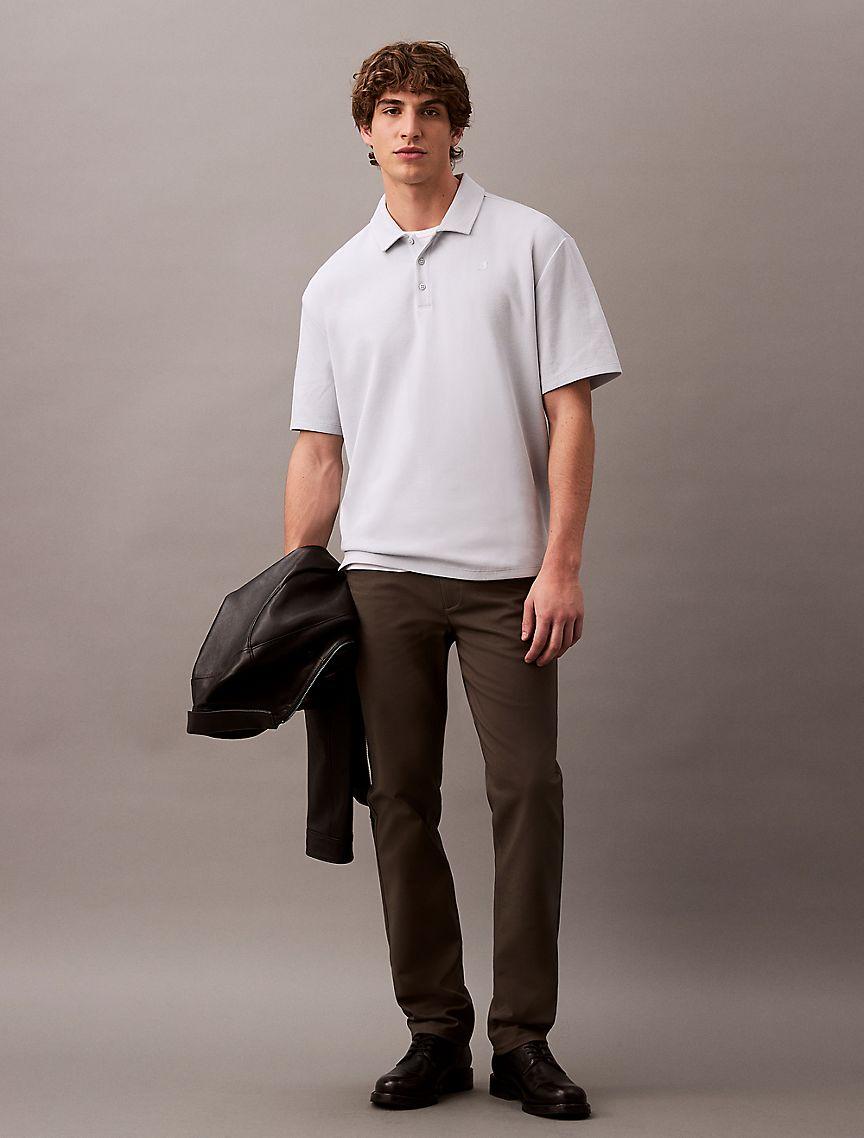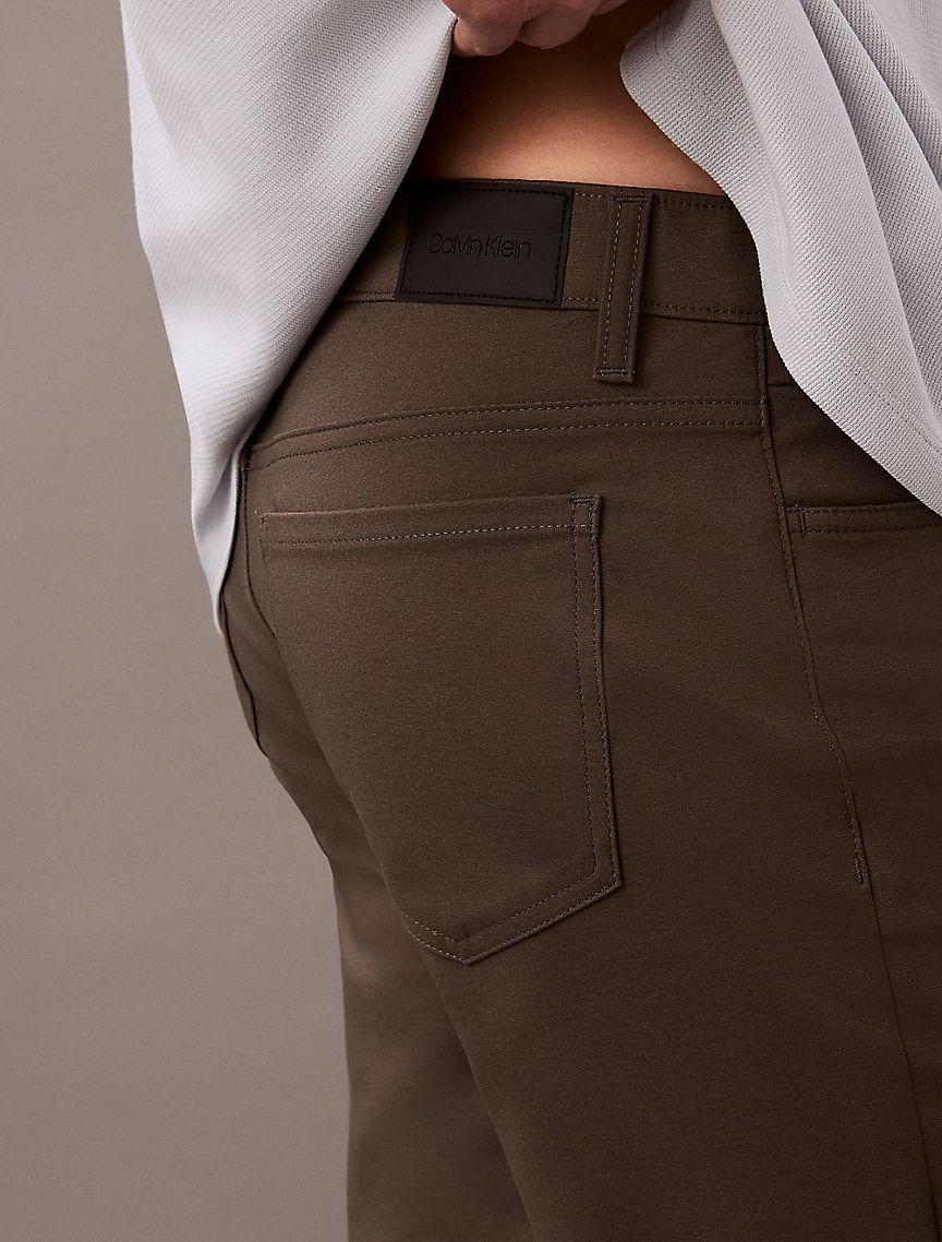 Crafted with stretch, these woven pants are made for an easy, flexible fit. Made with wrinkle resistant fabric, perfect for those on-the-go. Features classic 5-pocket styling and finished with a Calvin Klein logo patch at the back waist.