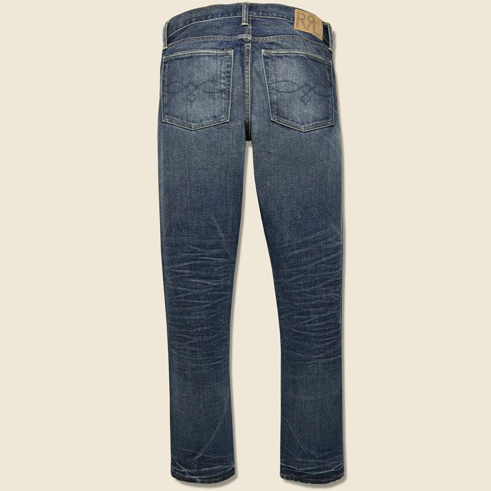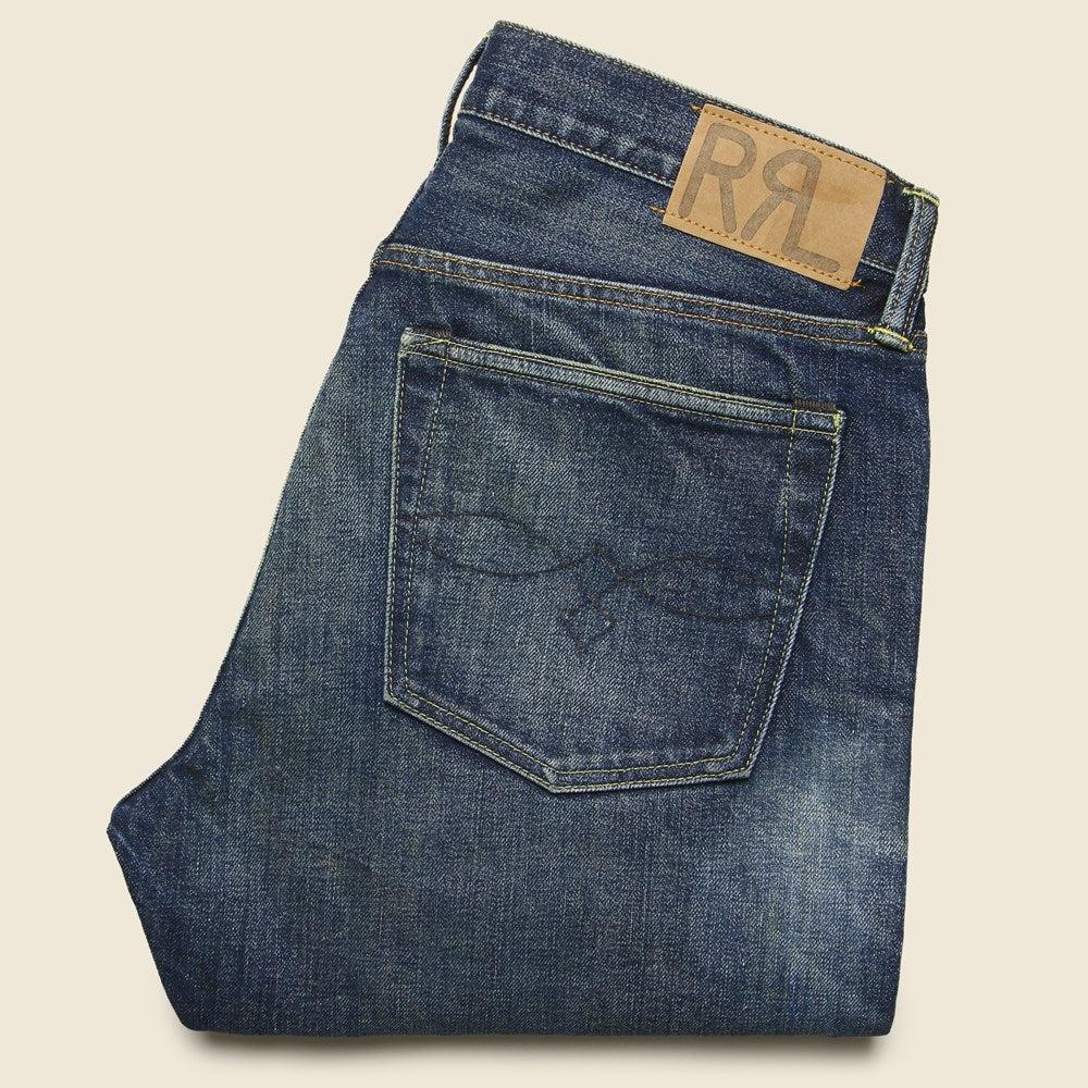 The Slim Narrow Jean from RRL is made from 13.5 oz. American right-hand twill that is exclusive to RRL. 1940s-inspired indigo denim with a slight red cast. Sanforized to reduce shrinkage after wash and wear. Slim narrow fit with medium-low pitched waist, slim tapered leg, and narrow leg opening. Hand-set, chain-stitched waistband with inserted belt loops for added durability Zip fly with signature shank closure Sanforized to prevent shrinkage after wash and wear American-made copper-tone shank, rivets, and washer burrs Five-pocket styling "RRL" embroidery at the coin pocket Heavy twill pocket lining Slim narrow fit with medium-low pitched waist, slim tapered leg and narrow leg opening "RRL"-debossed logo label at the back right waist Materials: 100% American denim The following measurements are for size 32: Rise: 10.5" | Inseam: 32" | Thigh: 10" | Leg Opening: 13"